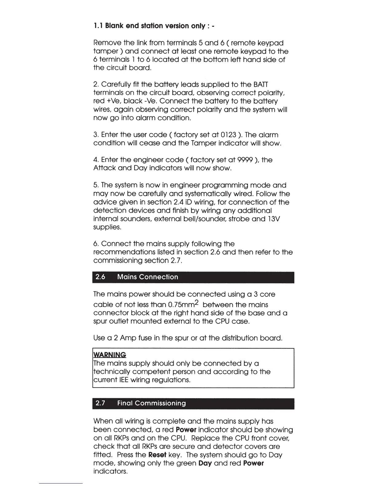 IDEAL Accenta - Mains Connection; Final Commissioning; Blank End Station Version Only