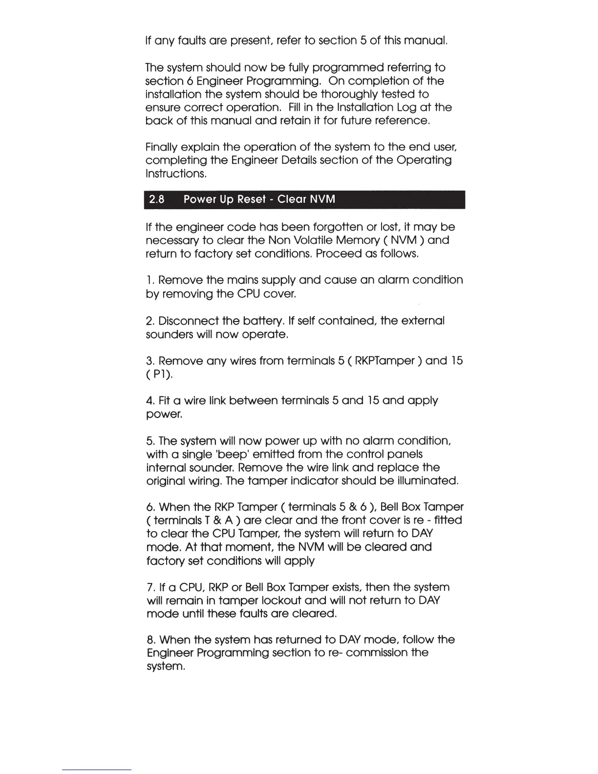 IDEAL Accenta - Power up Reset - Clear NVM