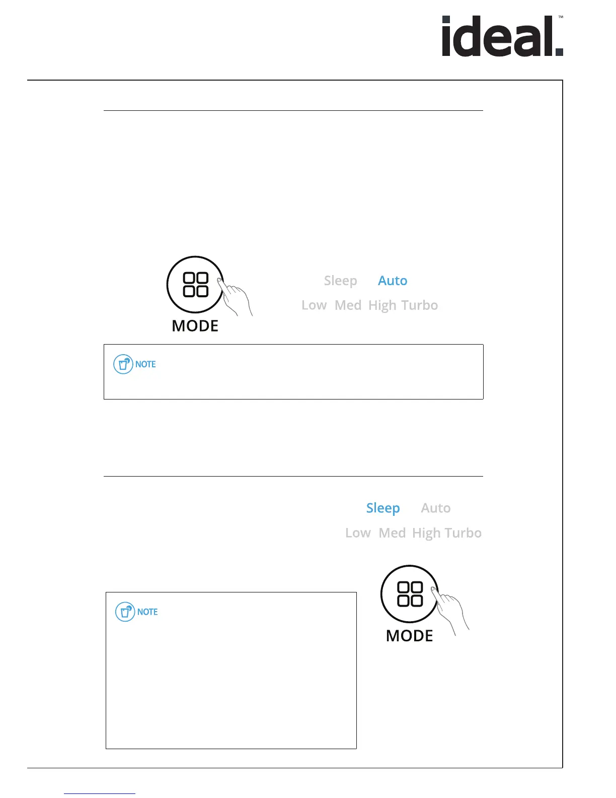 When Sleep mode is selected, the fan