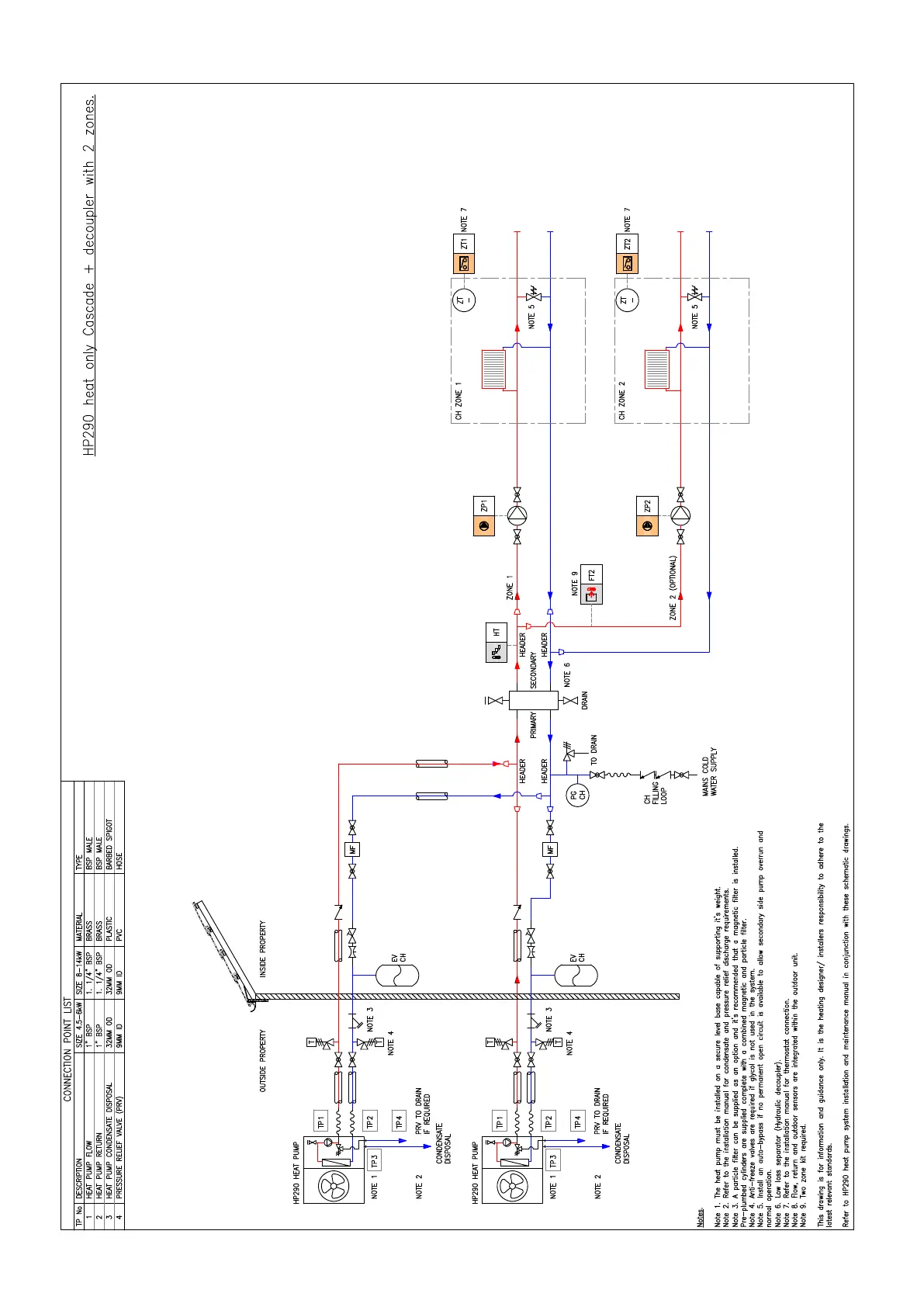 1.1.8 HP290 Heat Only Cascade + decoupler with 2 zones