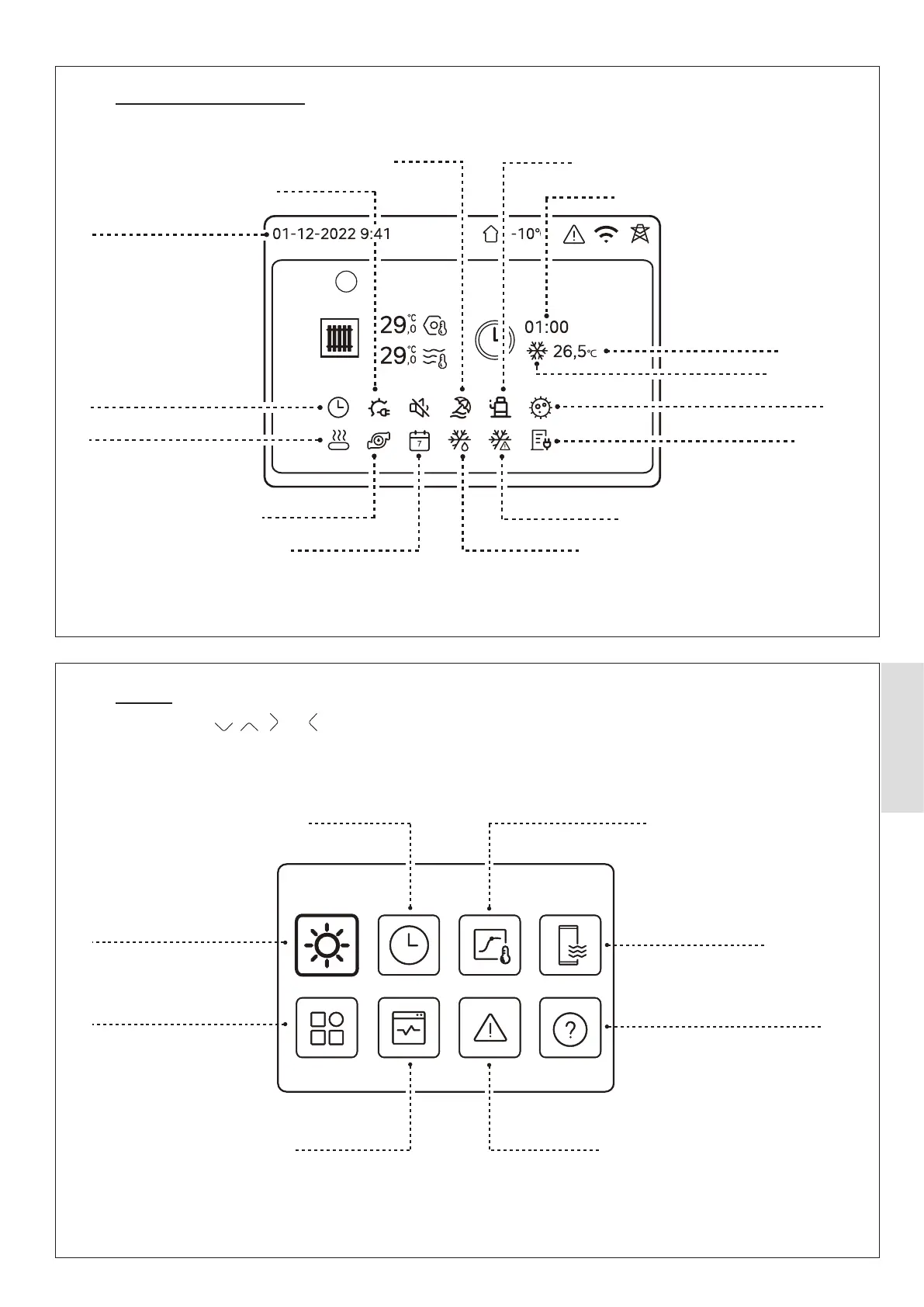 Weather temp. settings (see section 5.8.3)