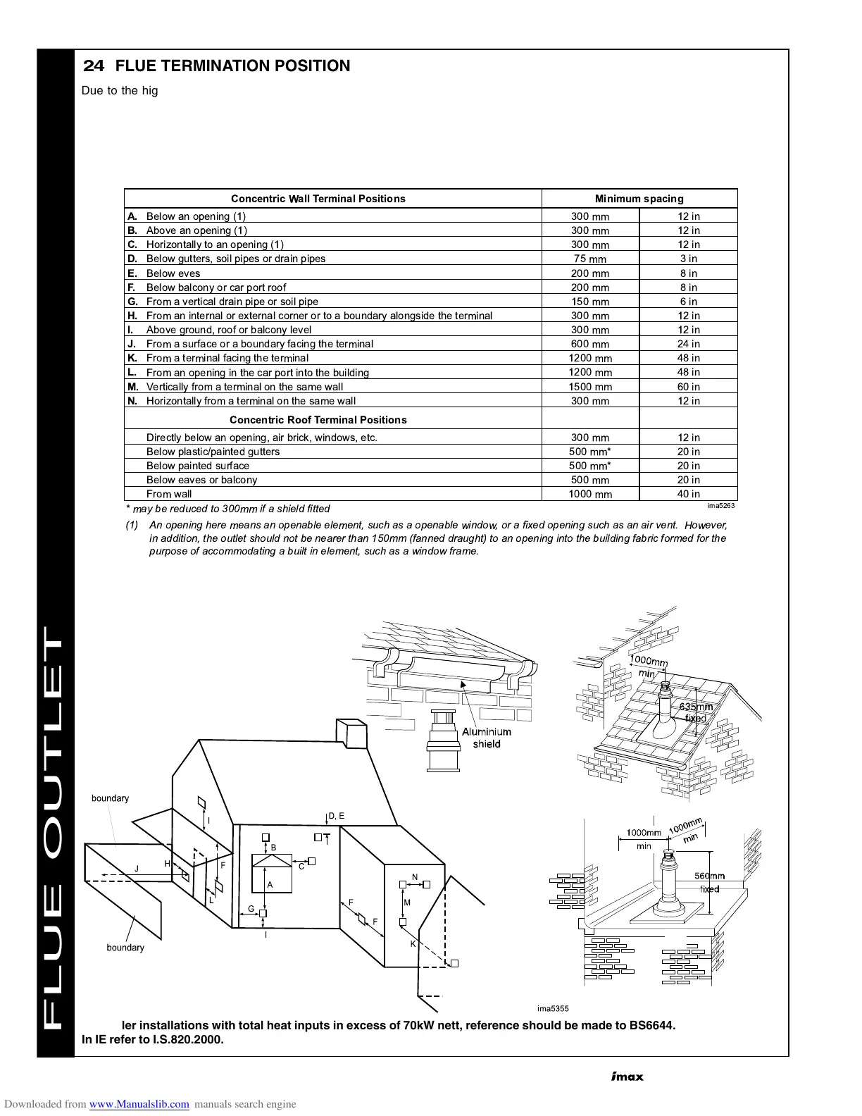 in addition, the outlet should not be nearer than 150mm (fanned draught) to an opening into the building fabric formed for the