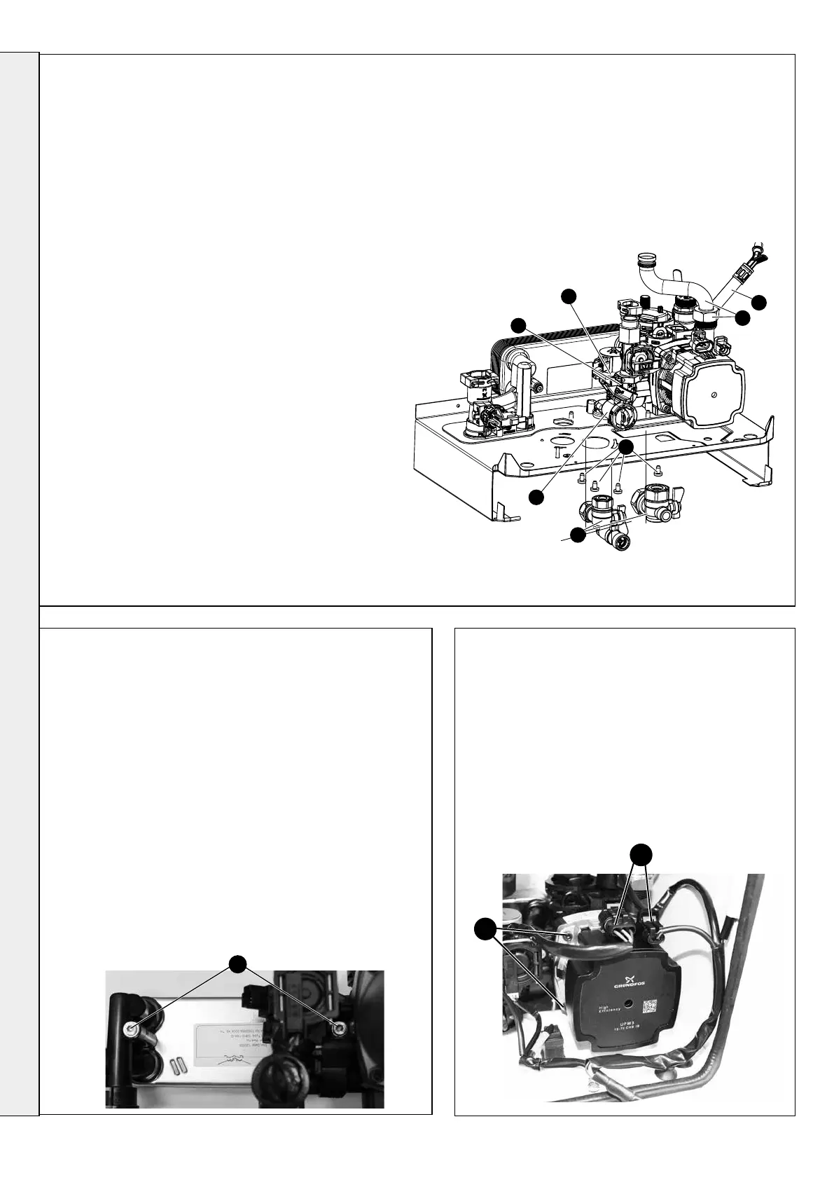 Remove DHW Turbine electrical connection. Refer to Frame 56 no. 3.