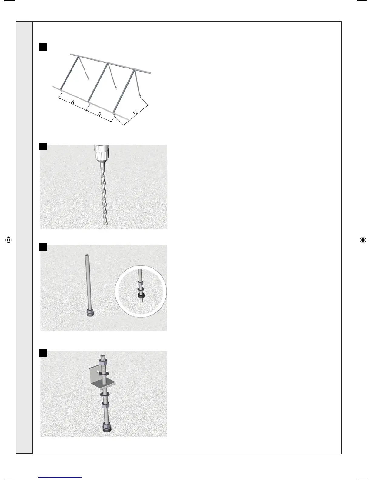 2. Drill holes in foundation / wood Ø 8mm, concrete as required