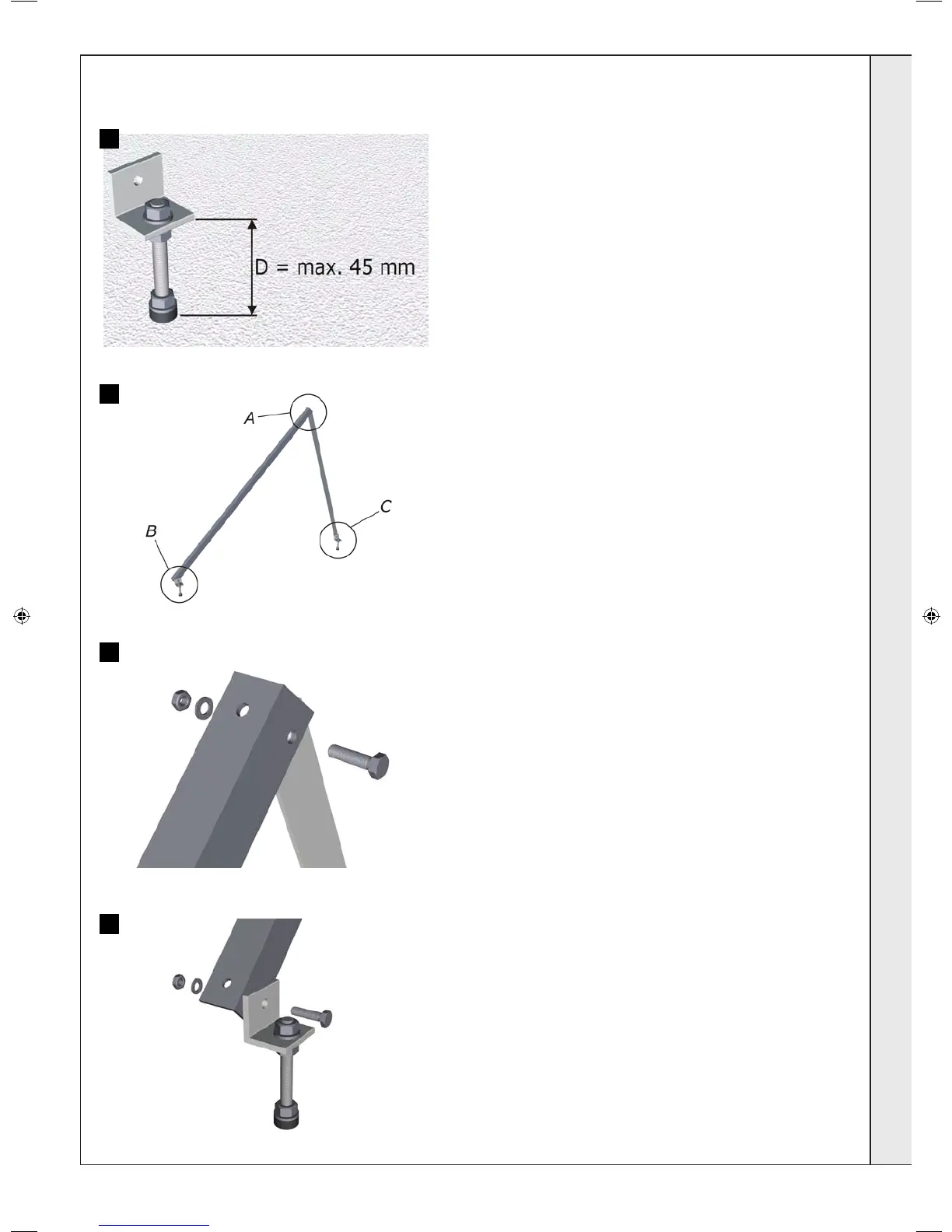 Order: screw – base bracket – support bracket - washer – nut