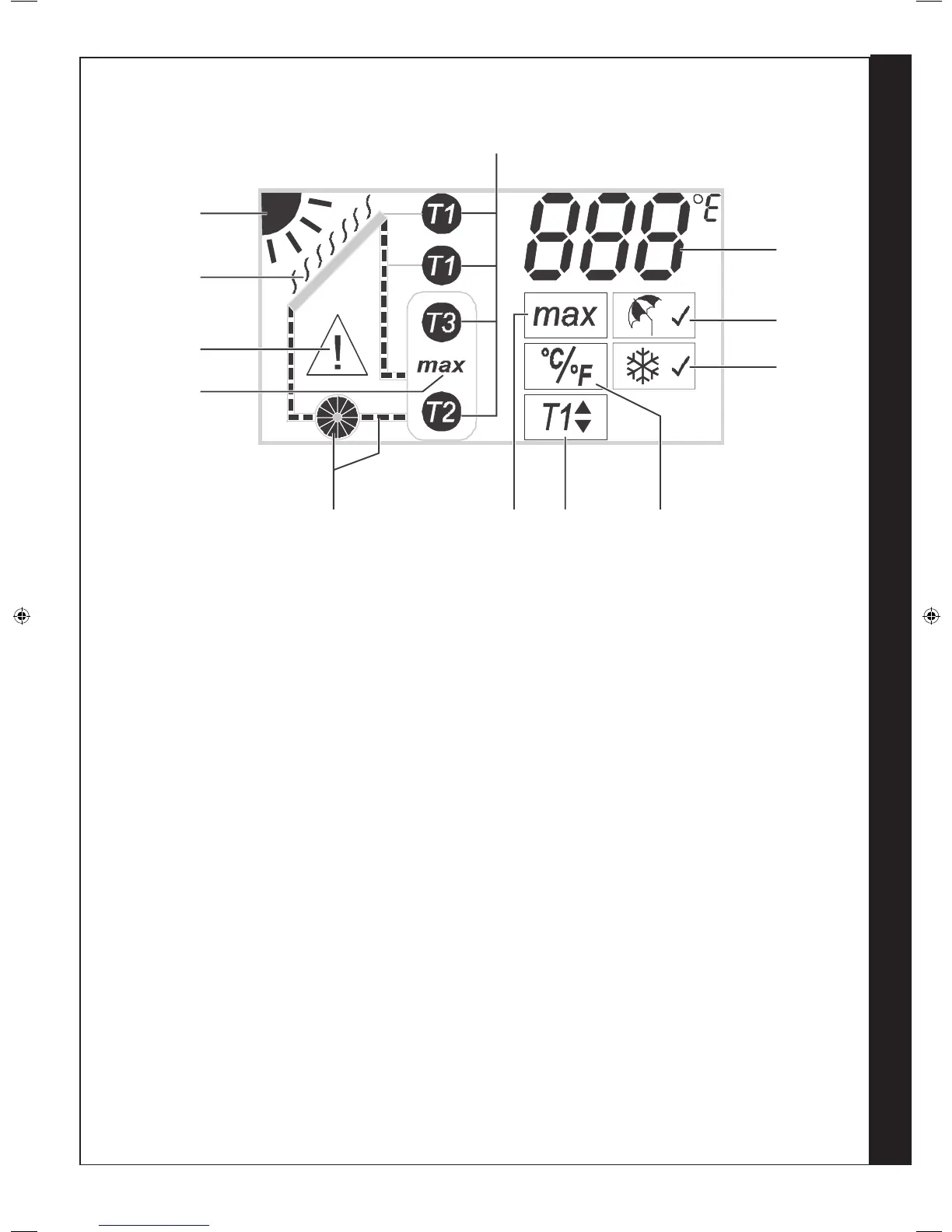 2. Display for temperature values and error symbols e.g. short circuit, open circuit or ‘SYS‘ = system error (see Section A )