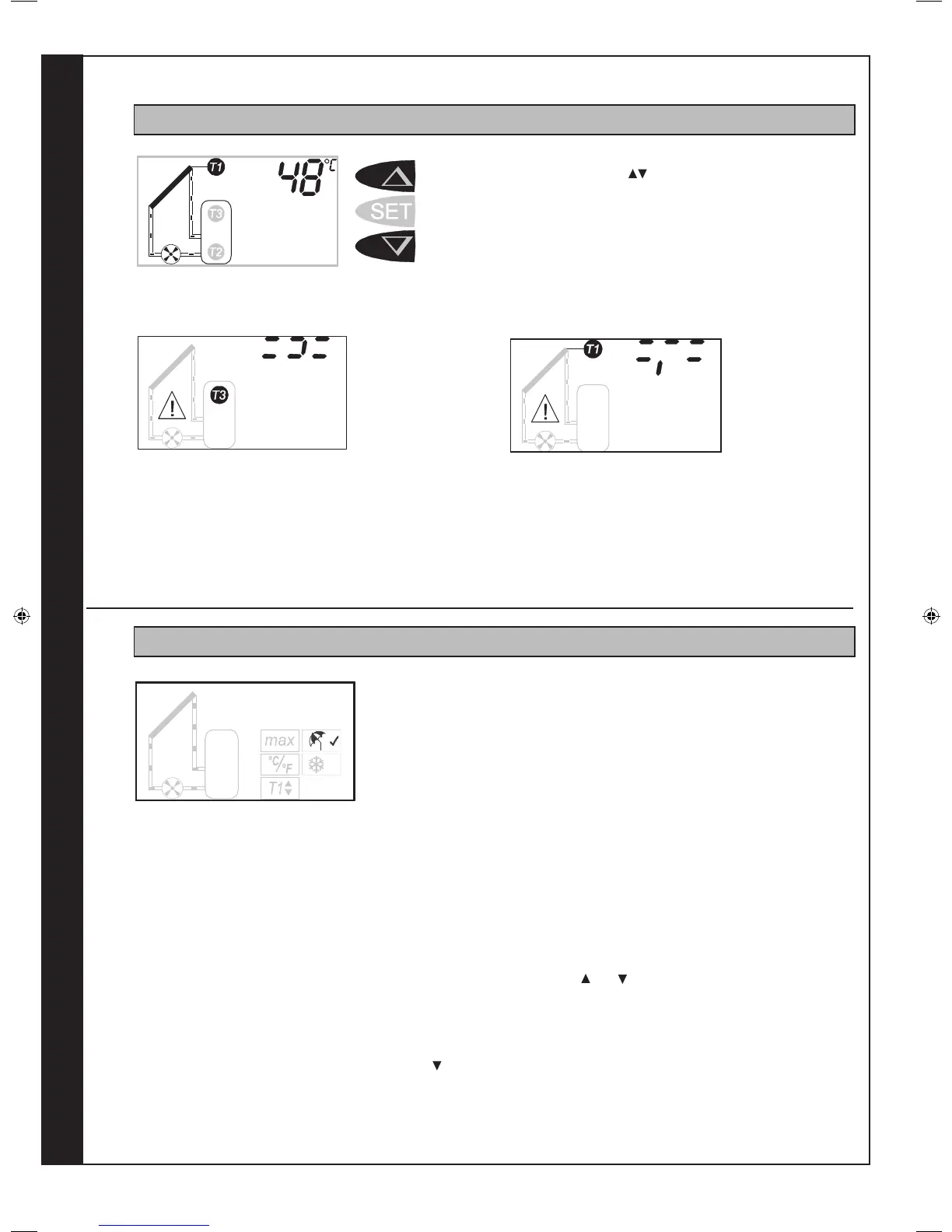 The temperature in the upper part of the storage tank is only displayed if the T3 sensor has been connected.