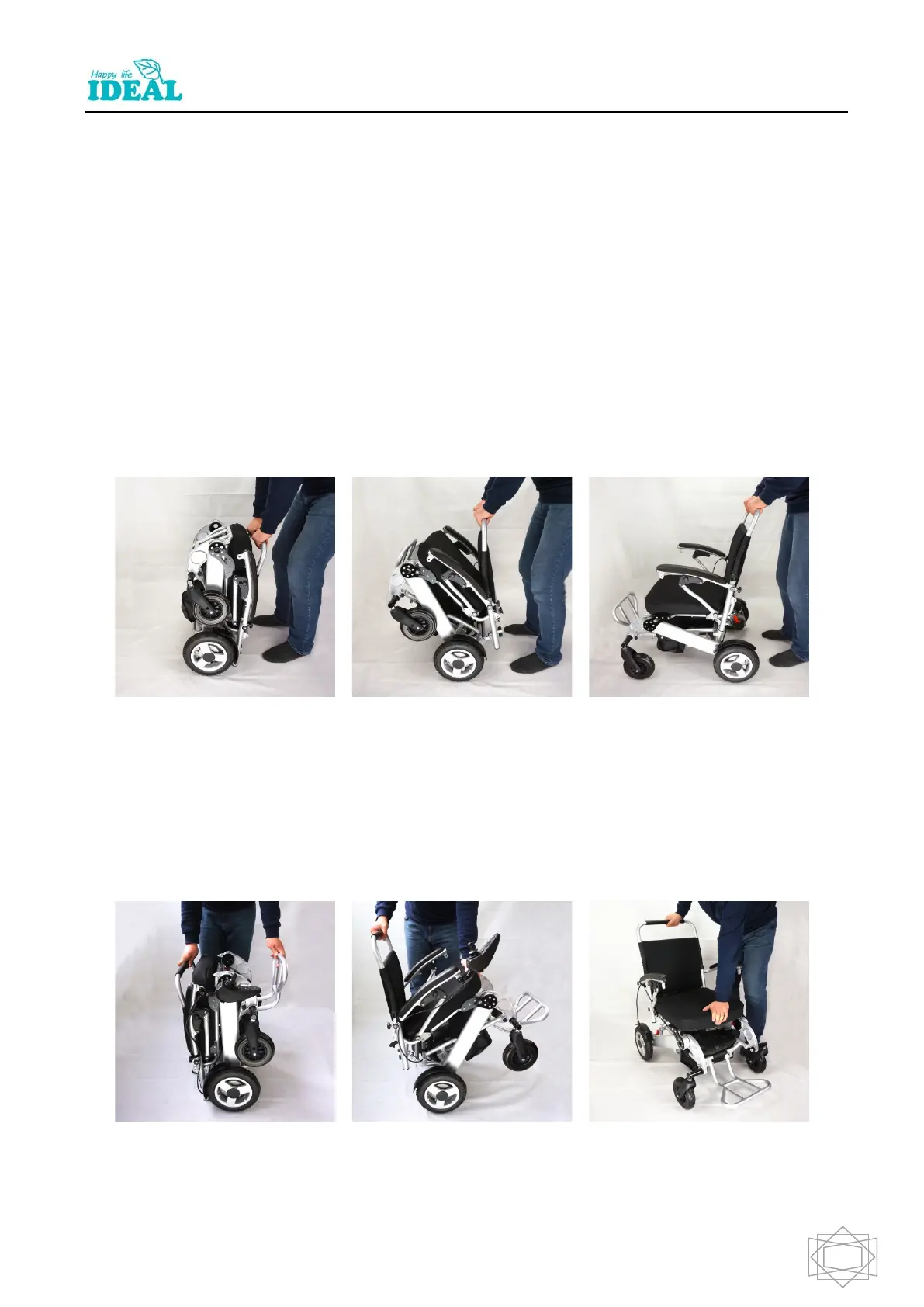 Method 2: Take out the wheelchair from carton, let it stand, user stand one side of wheelchair, open the