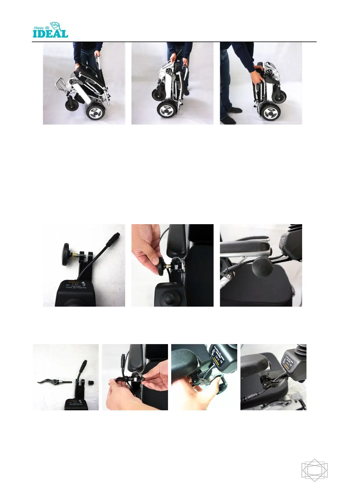 Take out the joystick from tools bag, use the knob or clip to fix it in the front of armrest (unscrew the knob