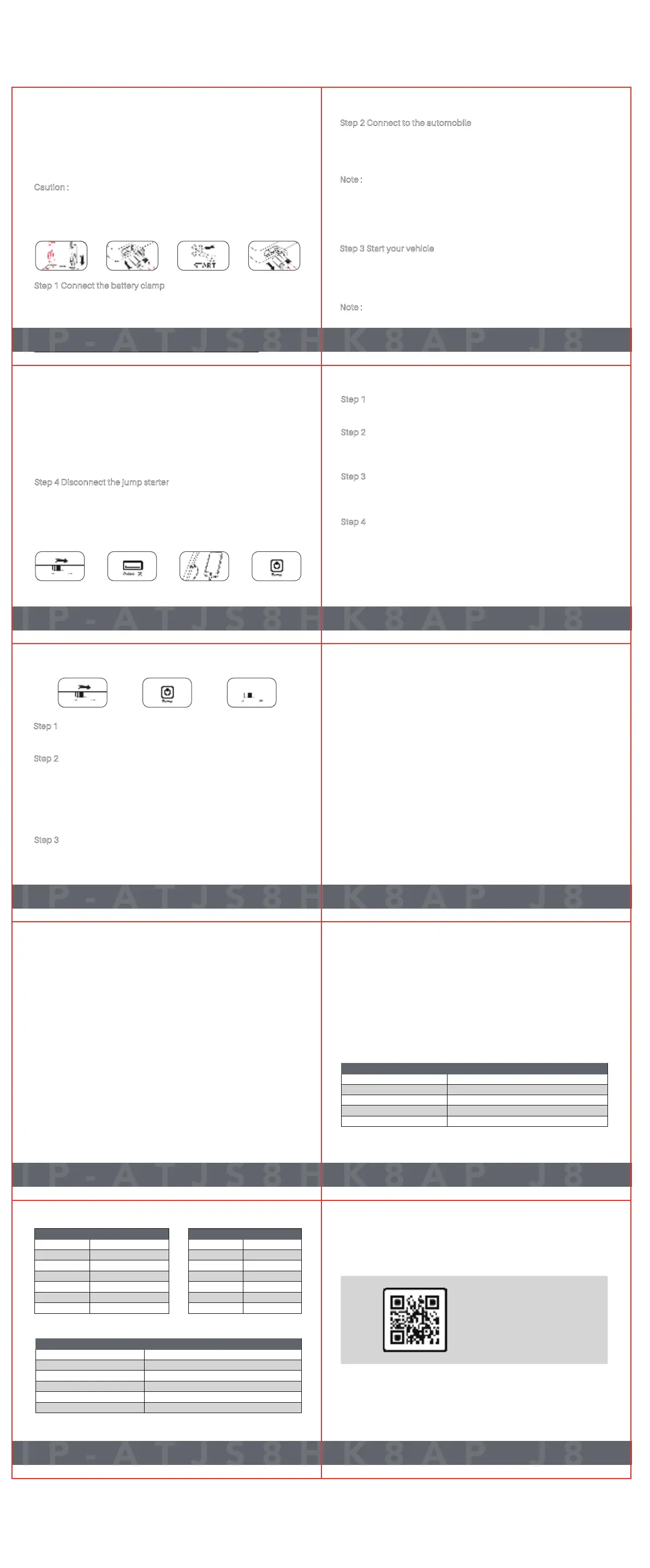 correctly connected and the J8 jump starter has sufficient charge. Turn the