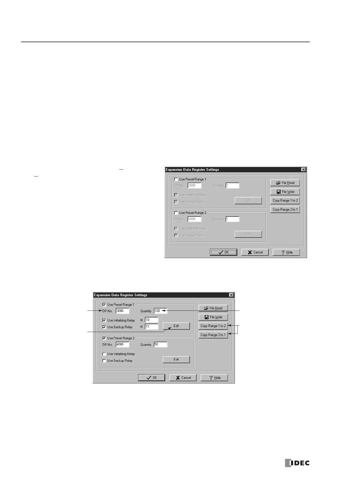 Among expansion data registers D2000 through D7999, two ranges can be specified for preset data registers.