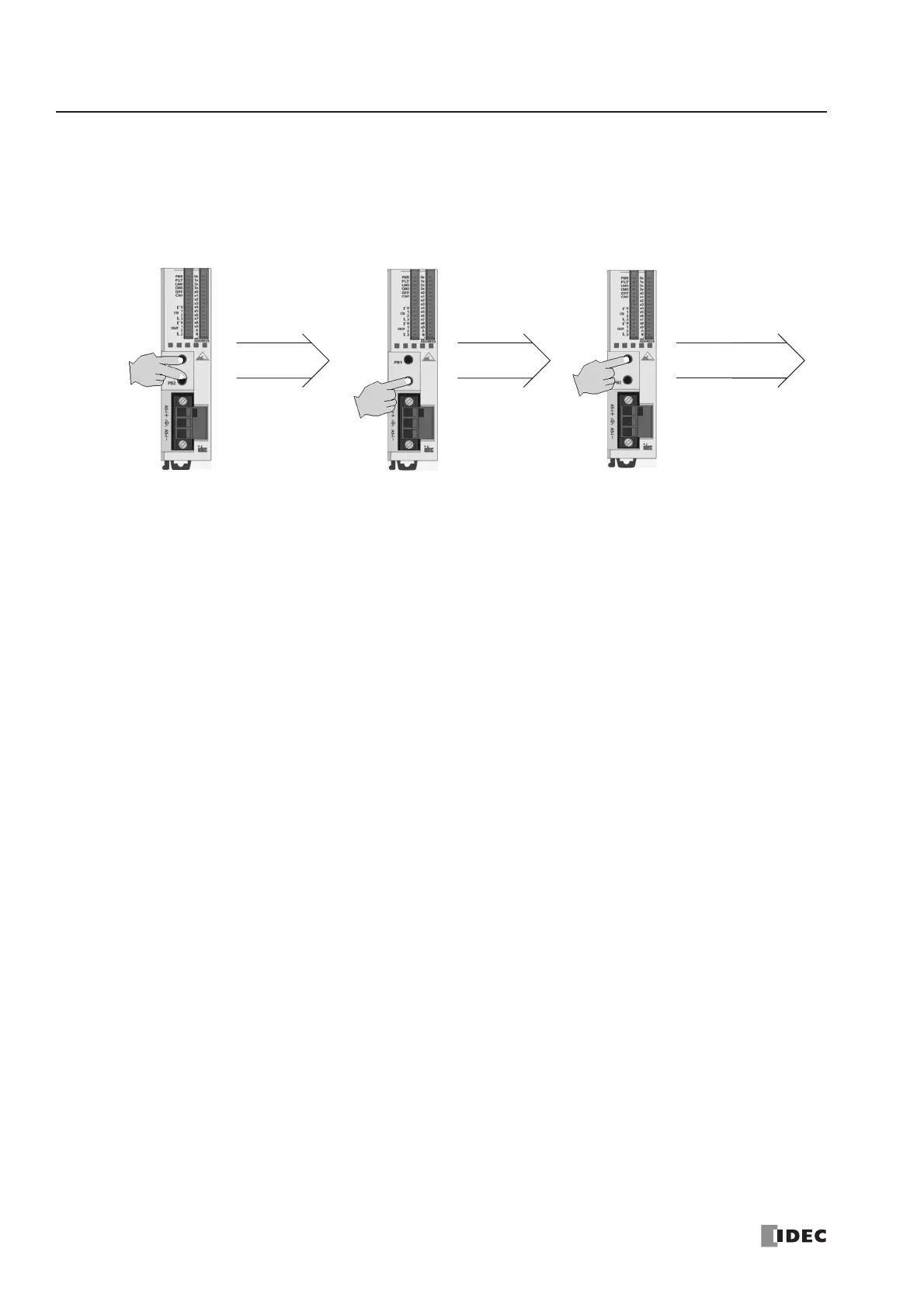 4. About 5 seconds later, press pushbutton PB1 for 3 seconds. All I/O LEDs blink once to complete configuration.