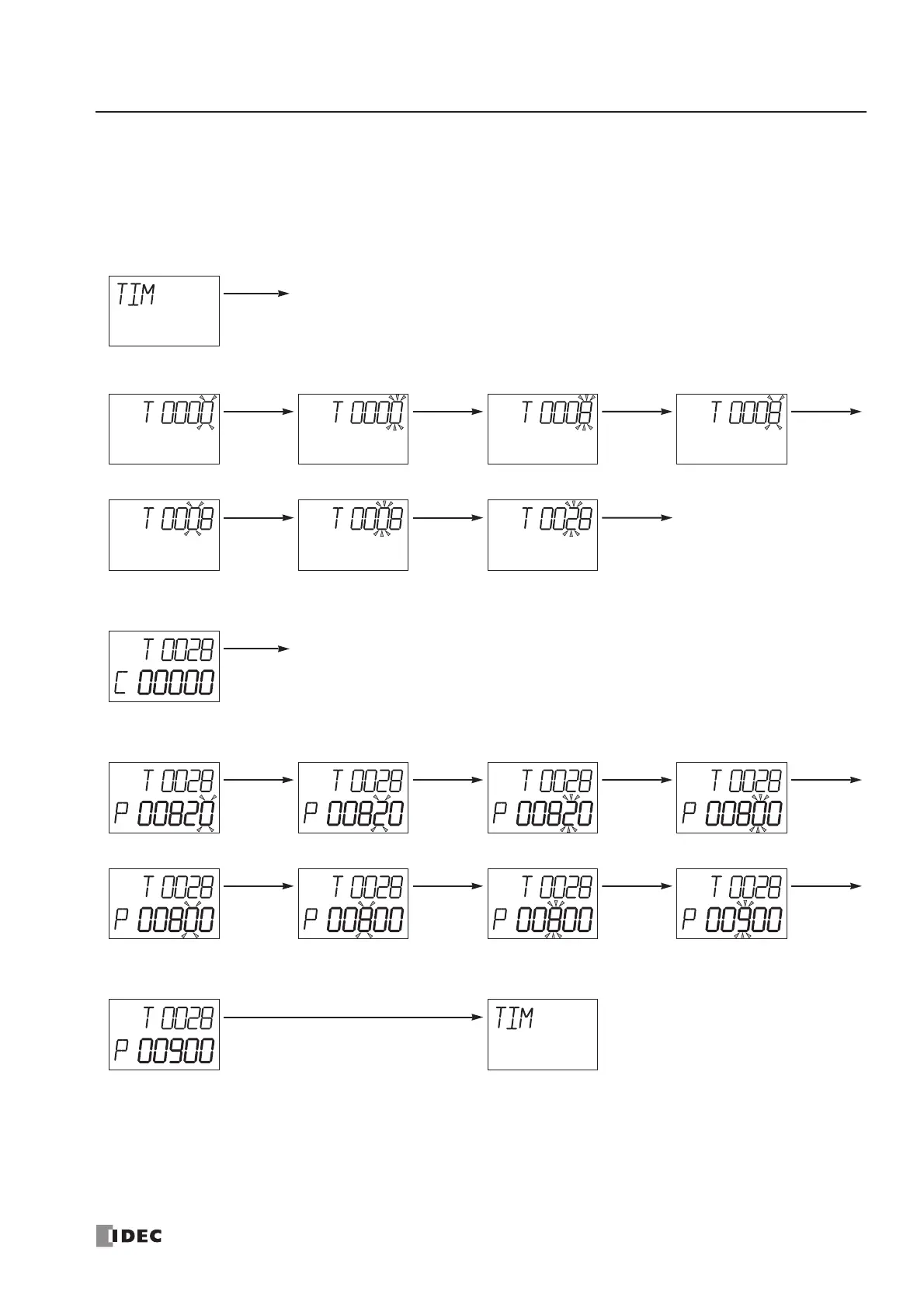 4. The preset value of the selected timer number is displayed. Change the preset value to 900 as described below.