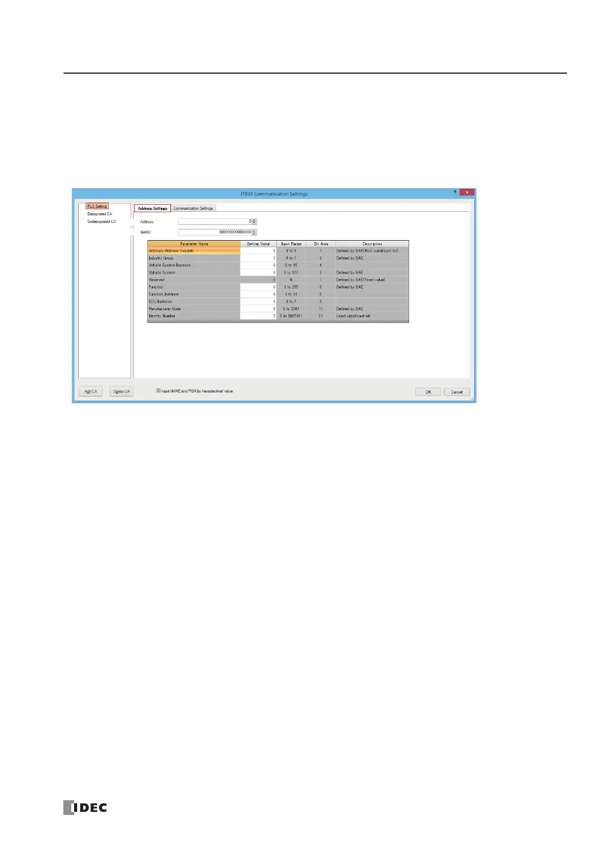 This section describes the J1939 Settings dialog box parameter settings required to use J1939 communication.