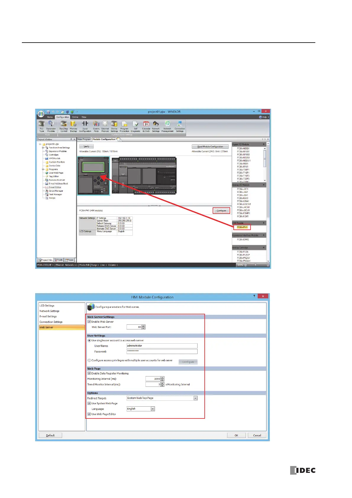 1. Use the Module Configuration Editor to configure the HMI module Web server settings.