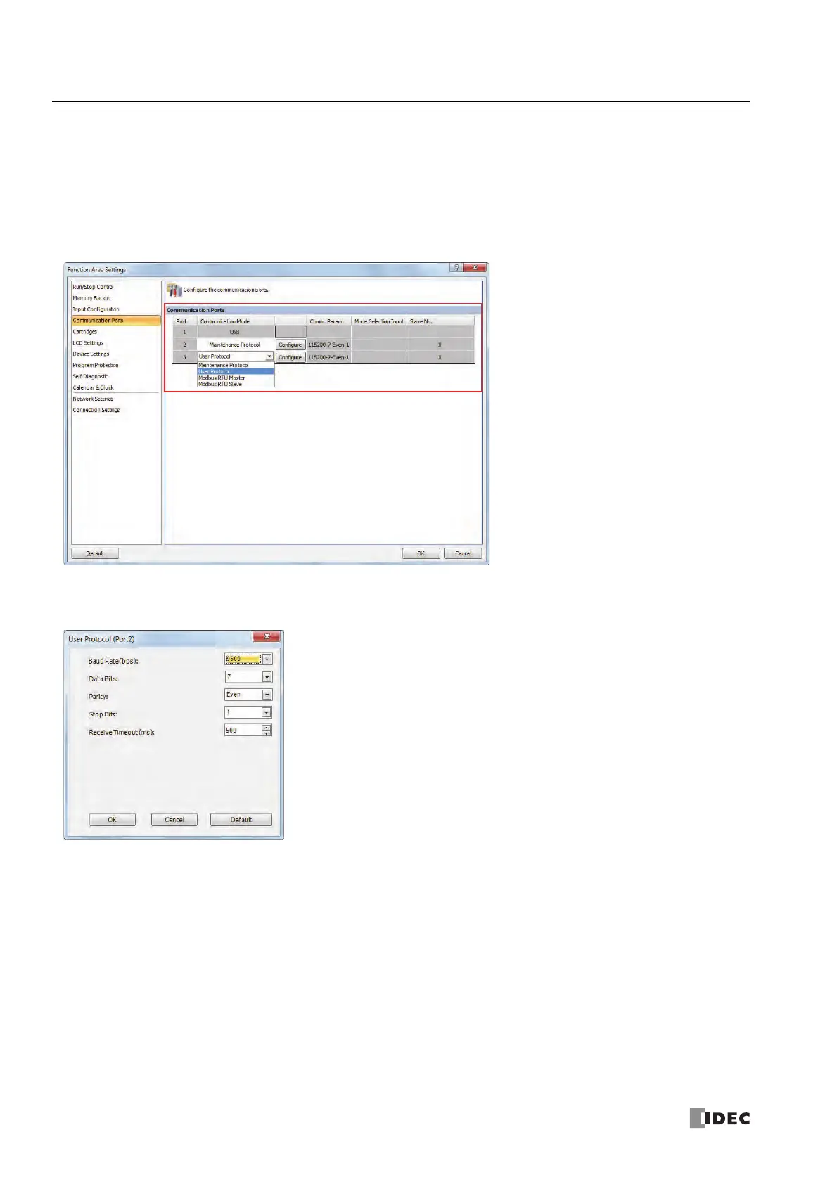 2. In the Communication Mode pull-down list for the appropriate port, select the communication mode.