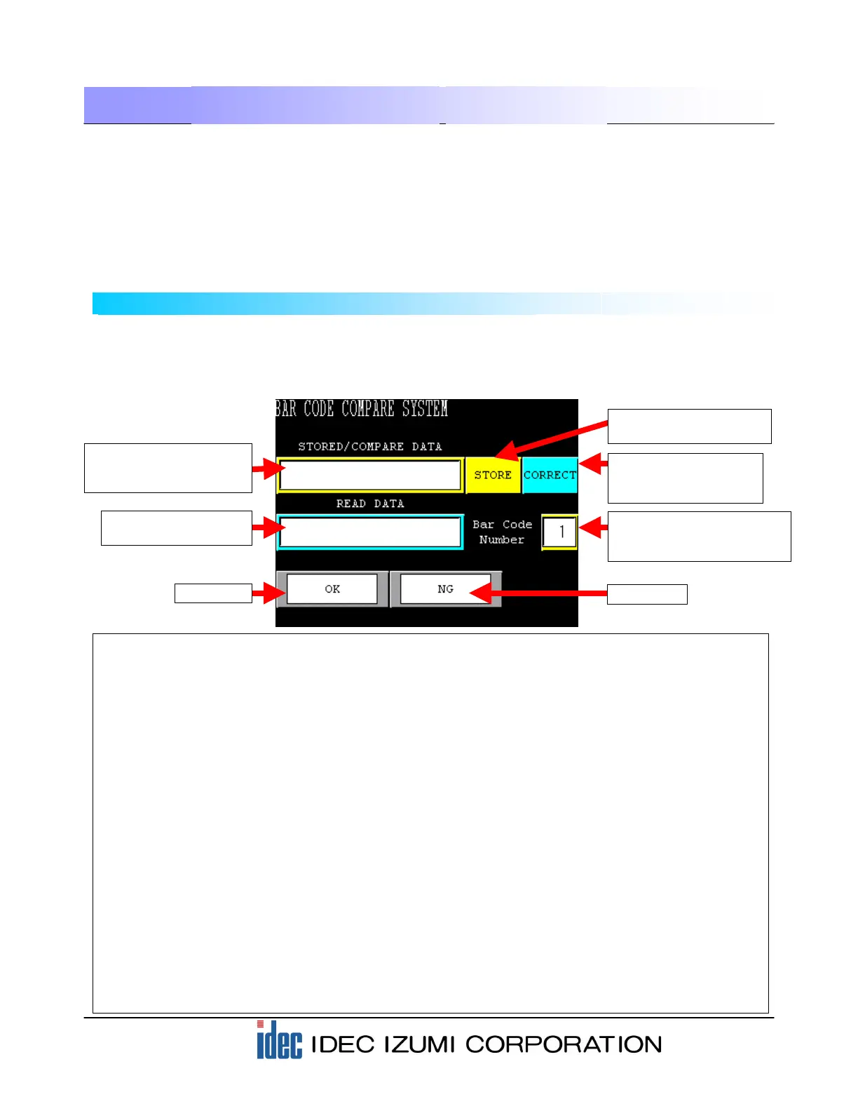 (1) Display and entry area of barcode STORED/ COMPARE DATA