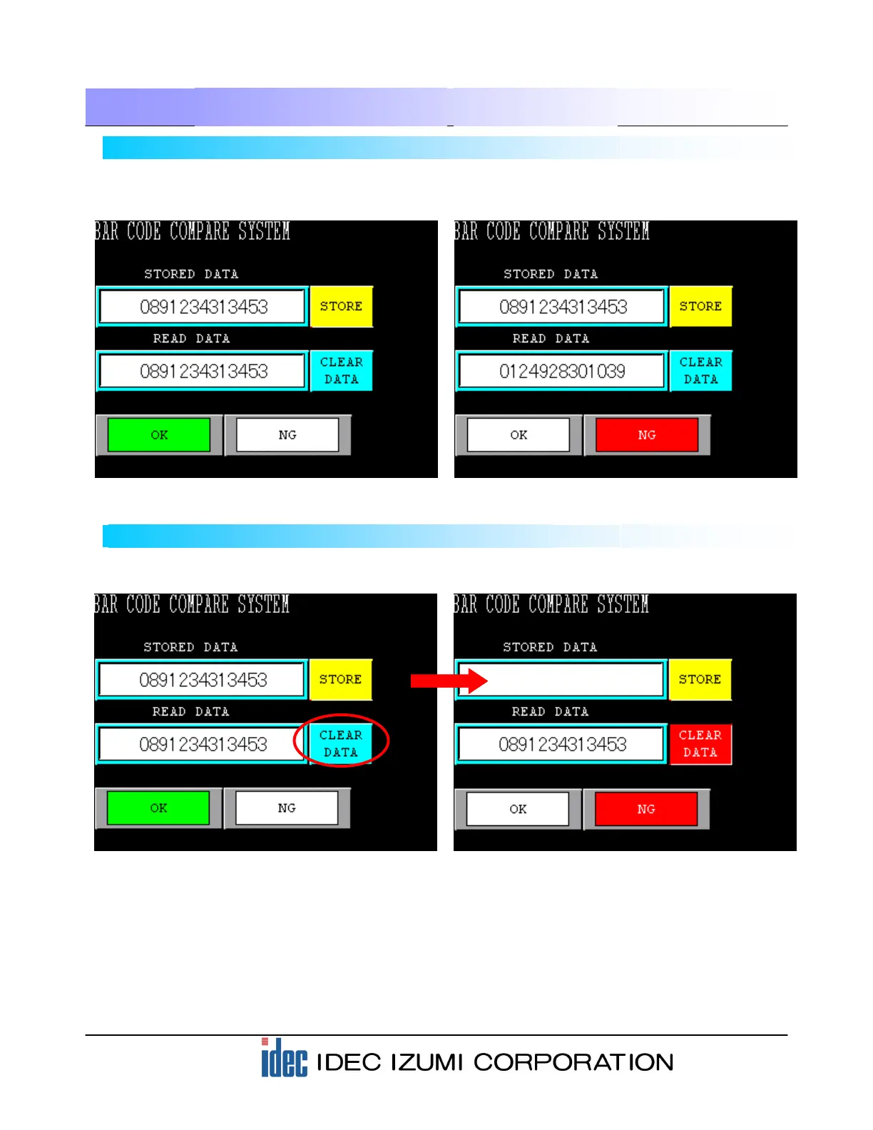 IDEC HG2F-SS22VF - Displaying OK or NG When Reading Barcodes; Clearing the Registered Barcode Data