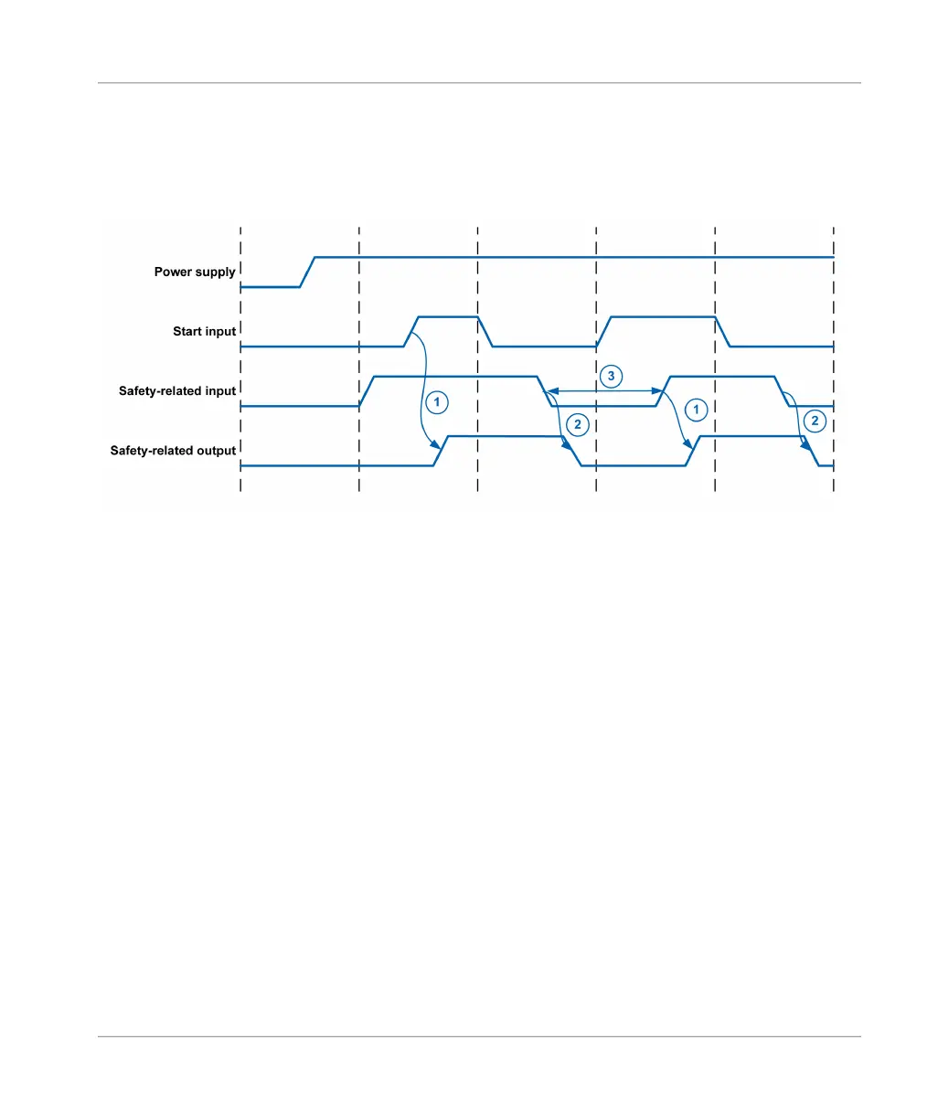 The timing diagram exemplifies the timing using one safety-related input and one safety-related