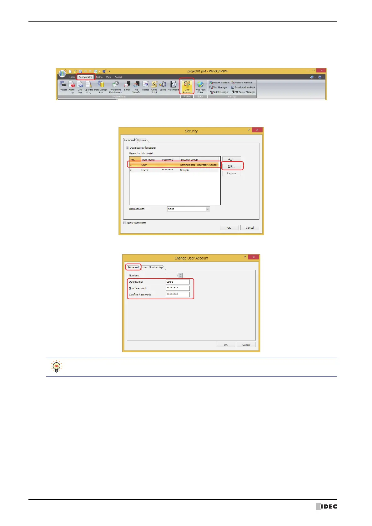 1 On the Configuration tab, in the Protect group, click User Accounts.