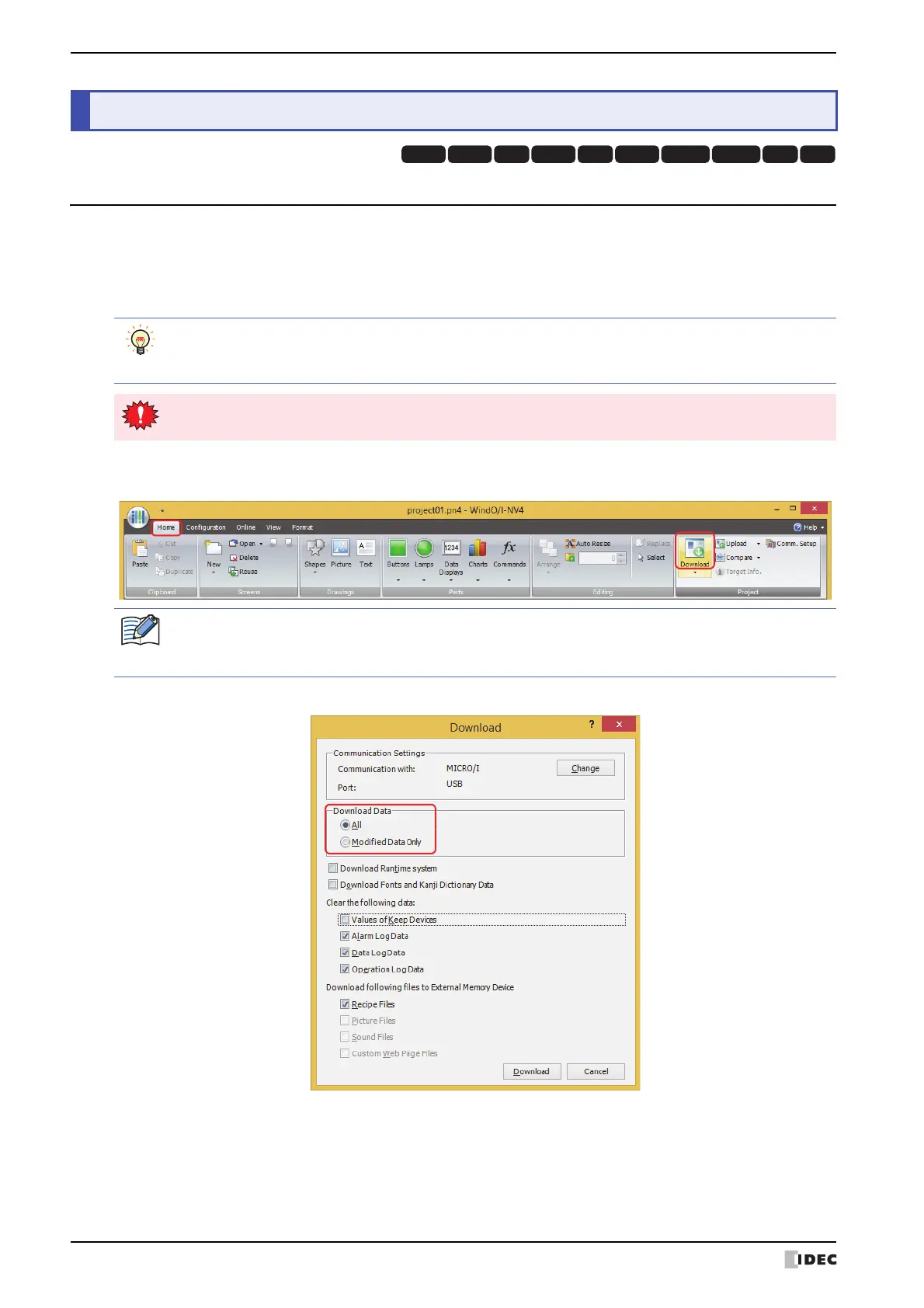 When project data is downloaded to the MICRO/I, the MICRO/I screen data is overwritten.