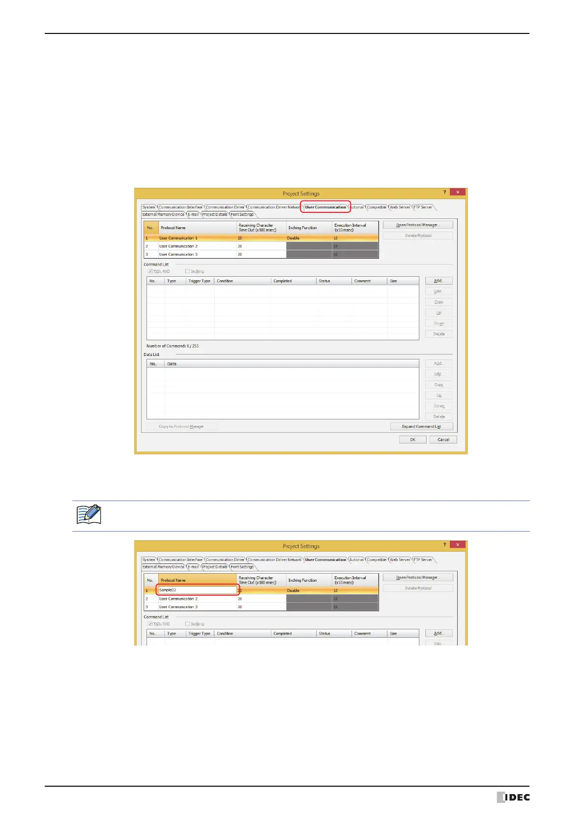 6 Enter the name of the user communication protocol that will be set in Protocol Name.