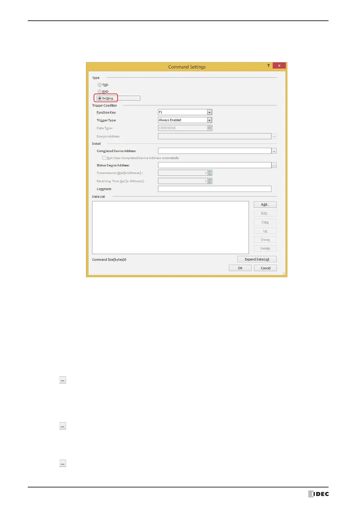 Specify the transmitted data for the inching function to the external device connected to the MICRO/I and the