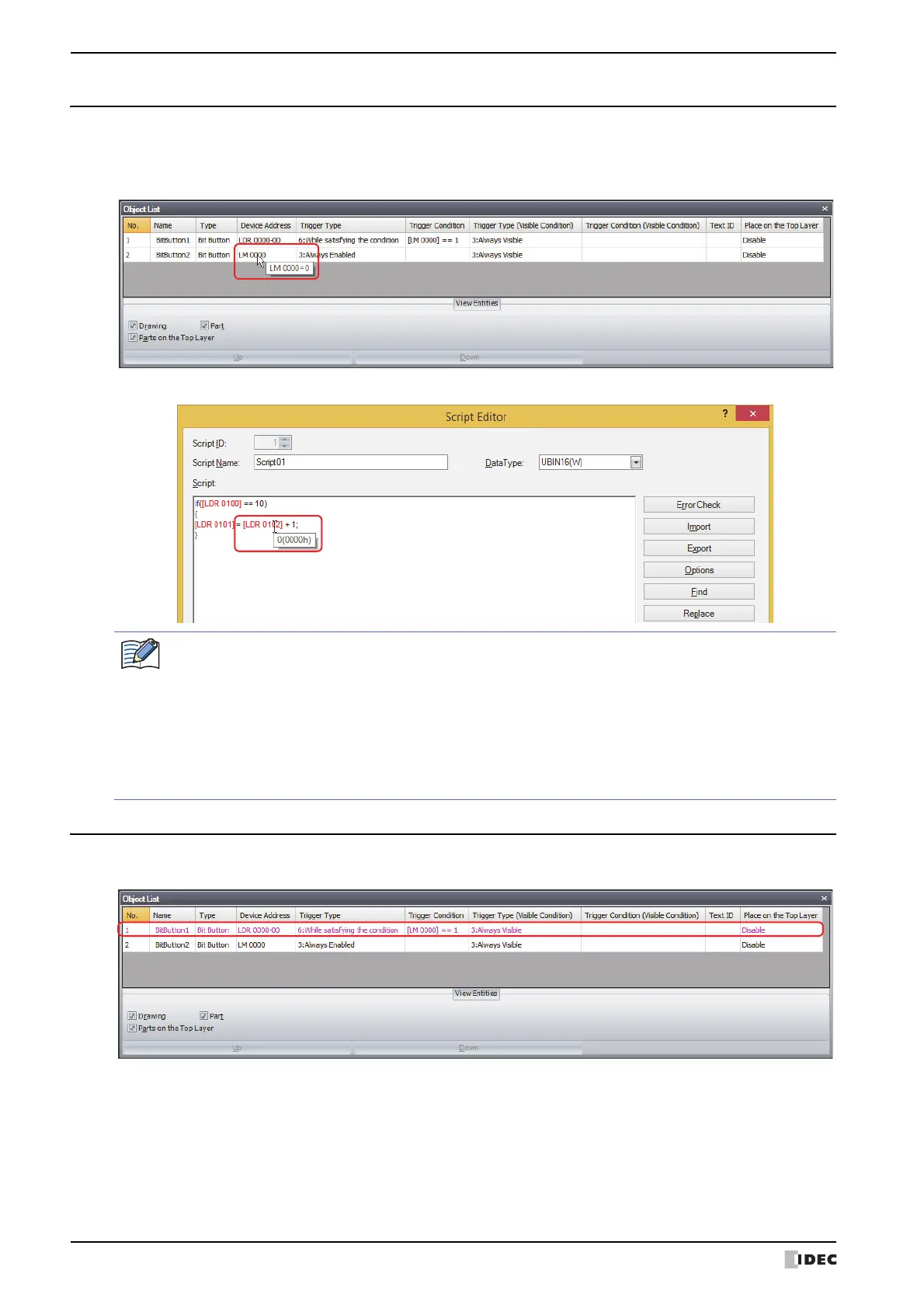 • Popup viewing of values of device addresses in Script Editor works only if the script during editing is being