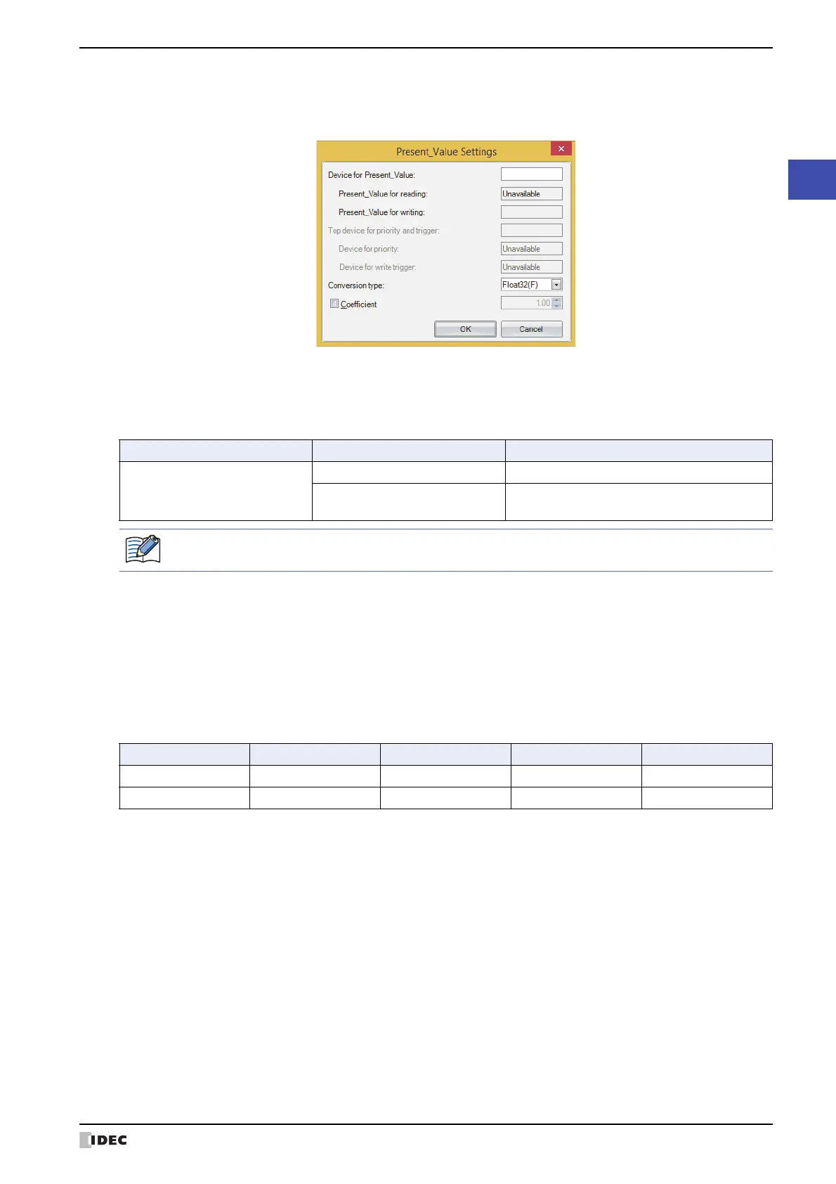 Configures the data type of the device address to which Present_Value (float) is allocated. For details, refer to