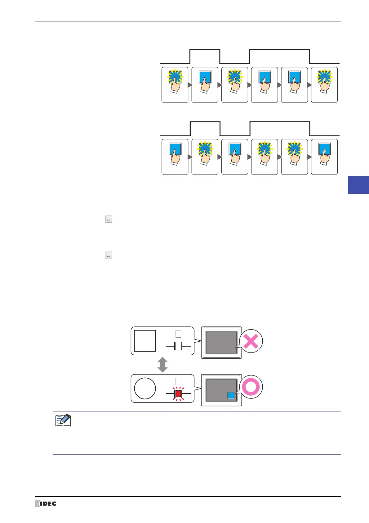 •When the ON delay check box is selected on the Options tab, if the button is hidden before the set time