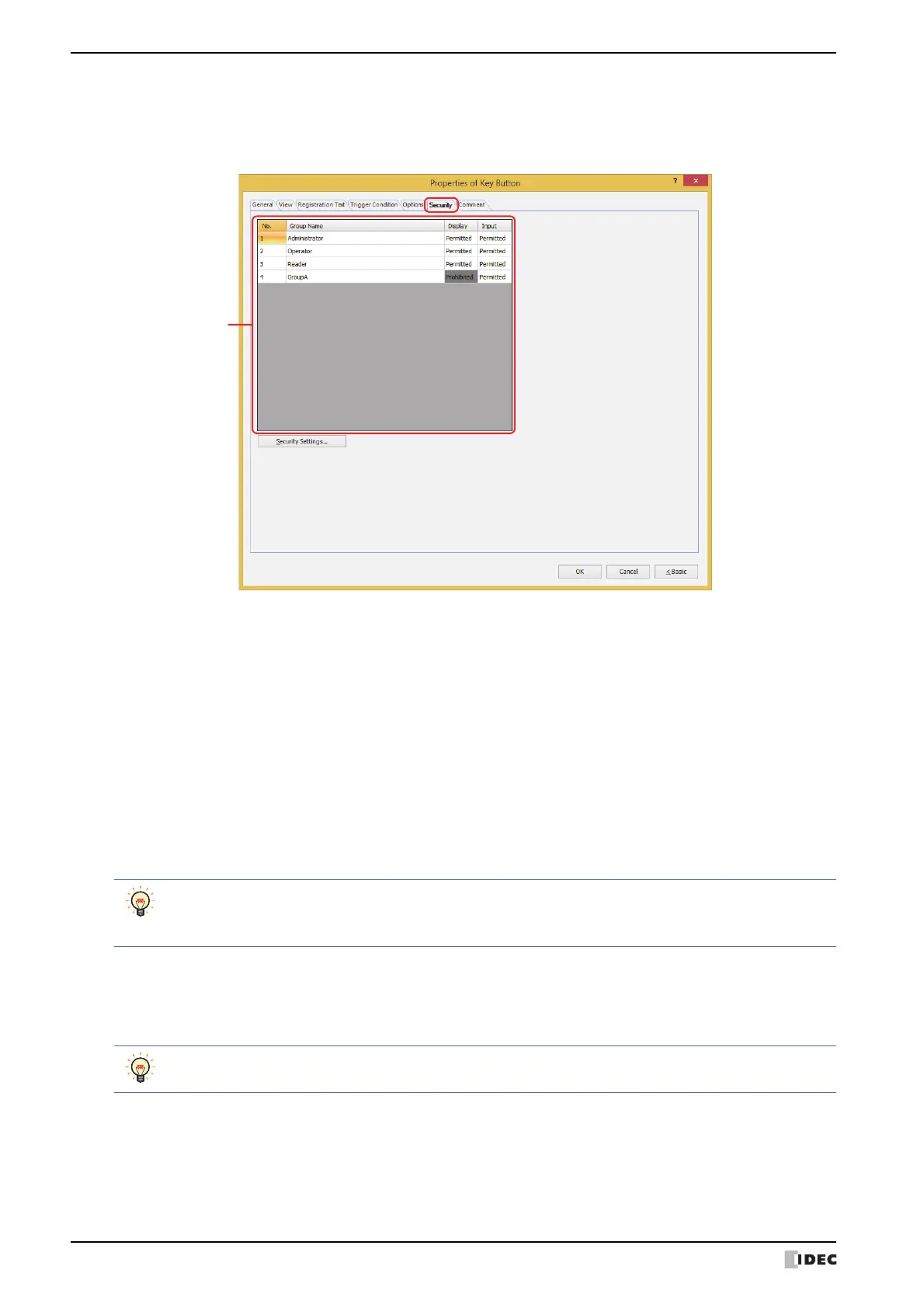 can display this part. If all security groups are set to Permitted, this part will be displayed even