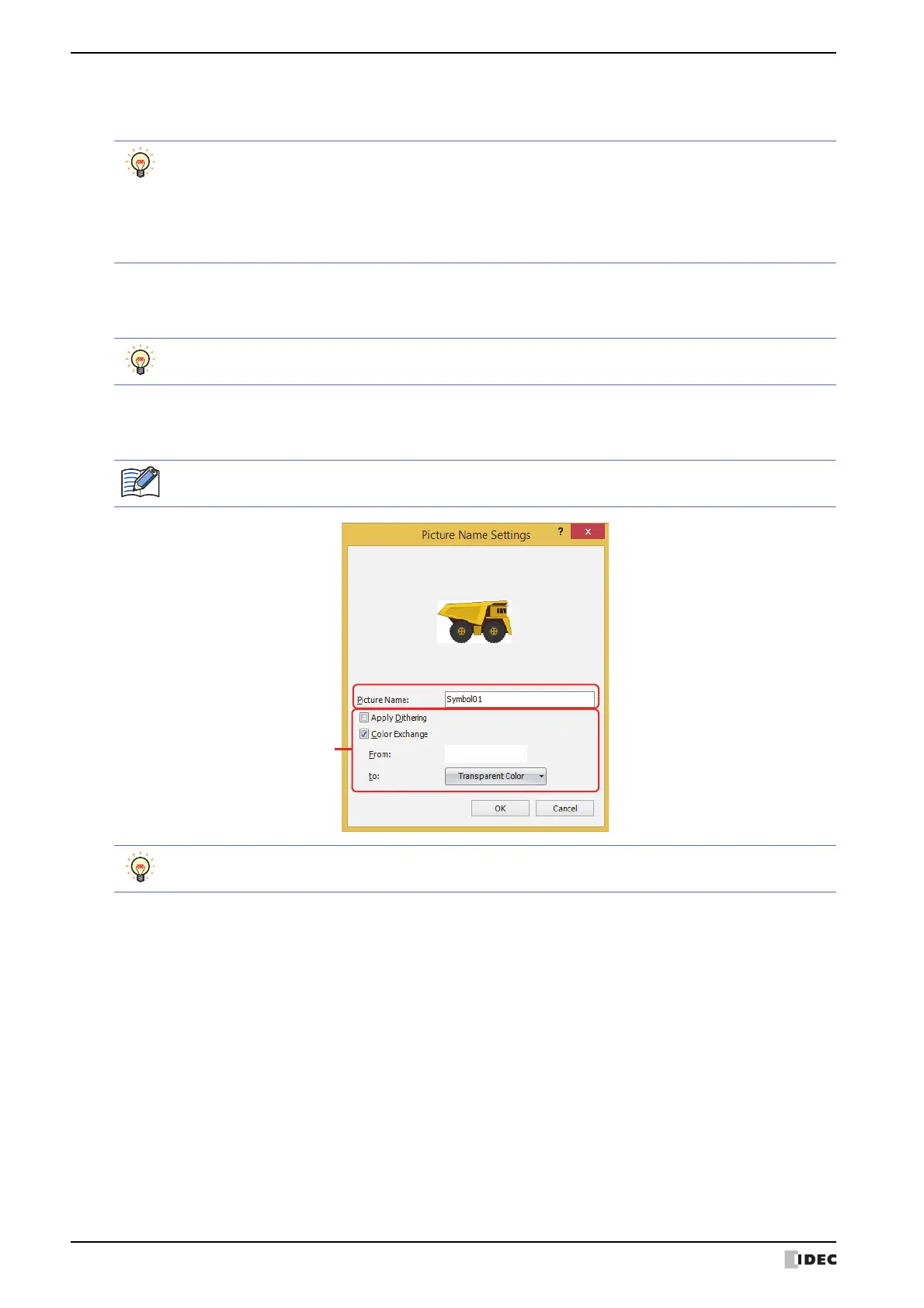 Configures the image processing in Options. For details, refer to “Picture Name Setting Dialog Box” on