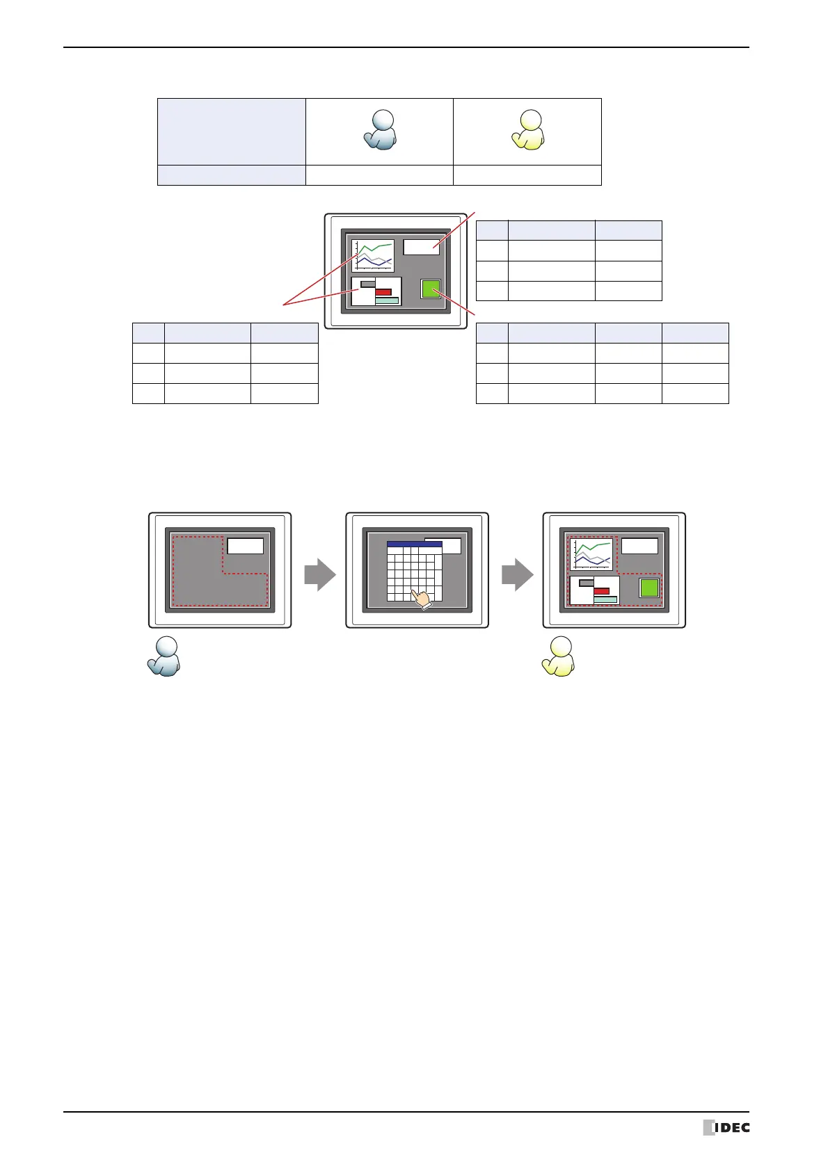 If the password screen is opened and the user switches to User2 in the Operator security group, the parts for which