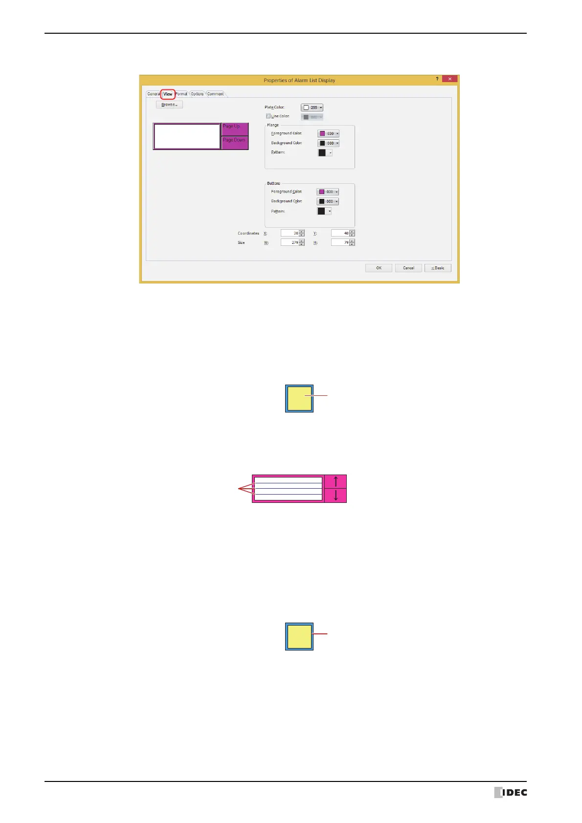 Foreground Color, Background Color: Selects the foreground and background colors of the flange (color: 256 colors,