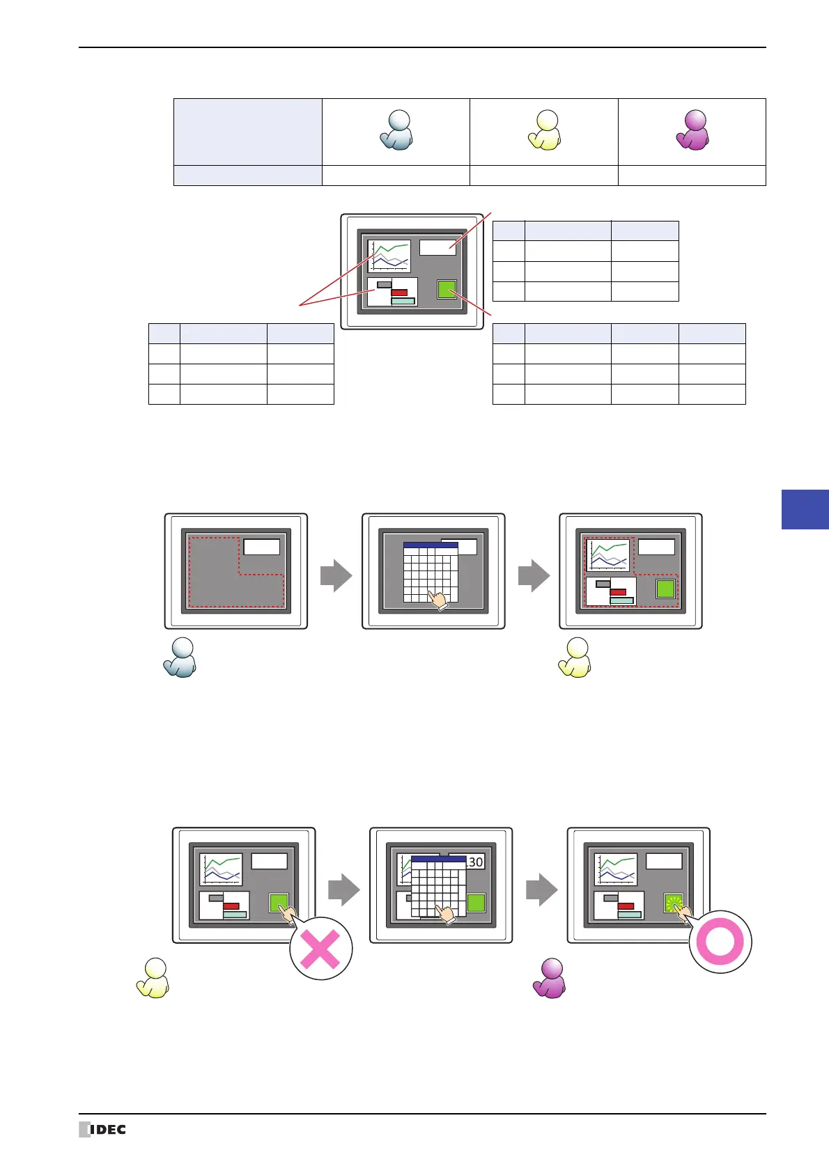 If the password screen is opened and the user switches to User3 in the Administrator security group, the parts for