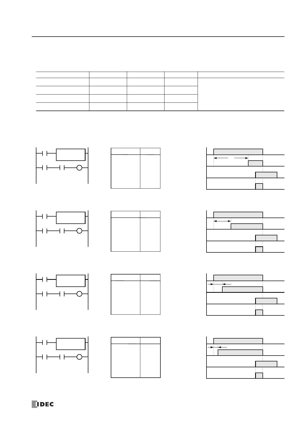 Four types of on-delay timers are available; 1-s timer TML, 100-ms timer TIM, 10-ms timer TMH, and 1-ms timer TMS. A total of
