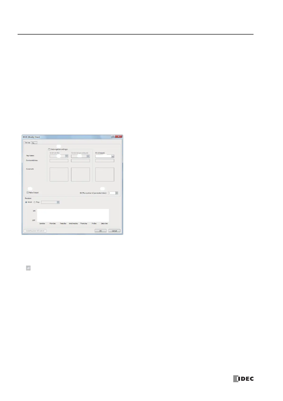 Note: When this check box is selected, the settings for the day of the week and the time are indirectly specified with data registers.