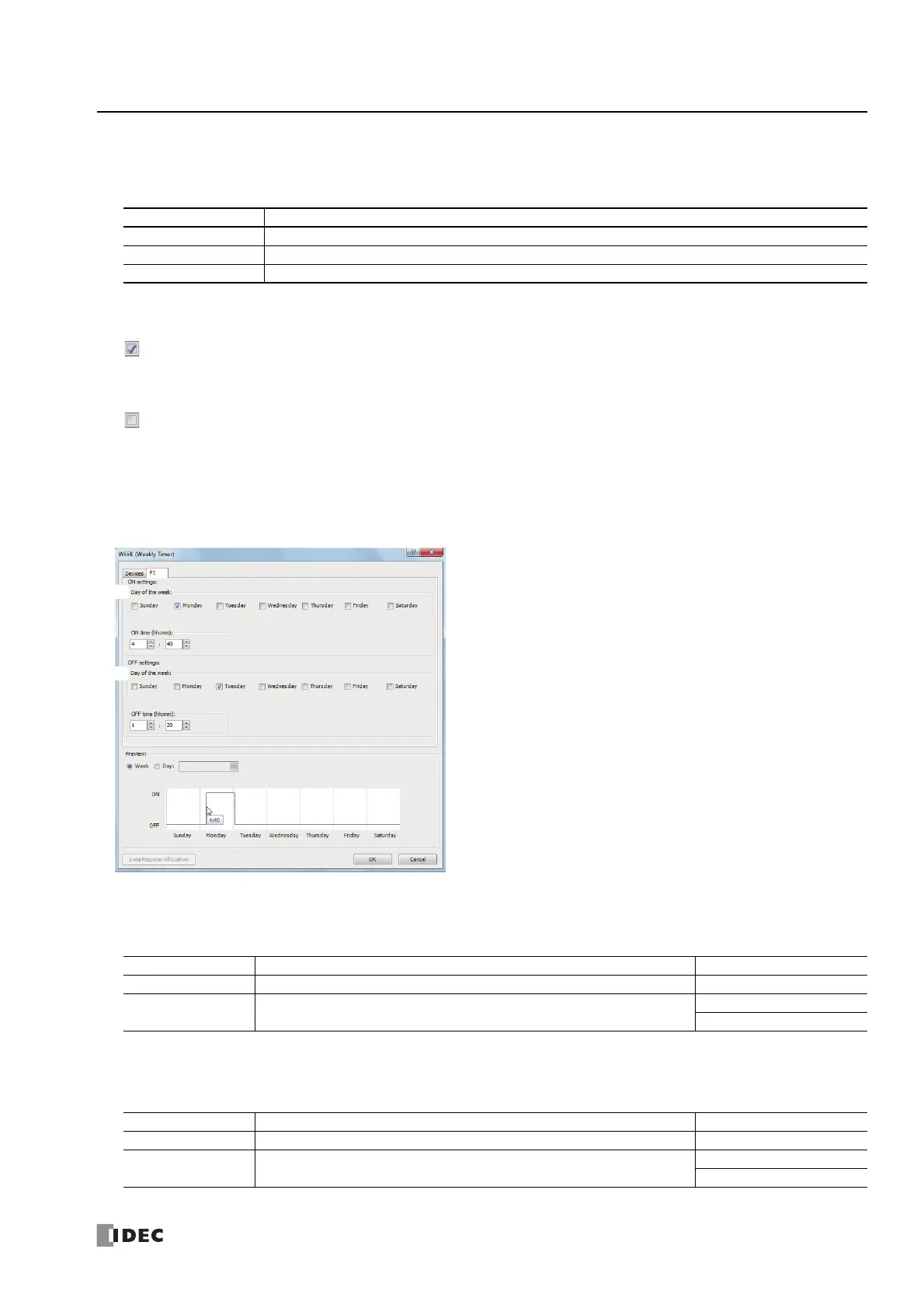 This tab configures the ON/OFF settings for the output. A maximum of 20 parameter tabs can be configured for one WEEK