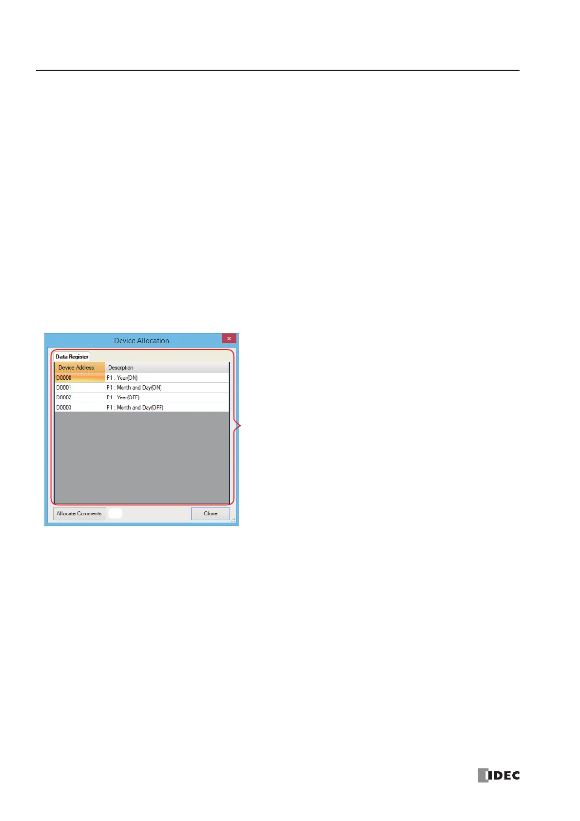 Click this button to display the Device Allocation dialog box. As shown below, a table of the data registers and their