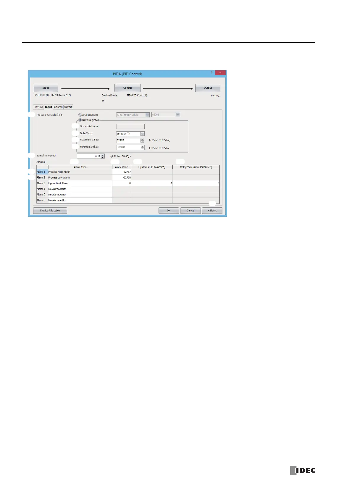 Configure the input for the PID control. The process variable is linearly converted and given to the PID control for the input