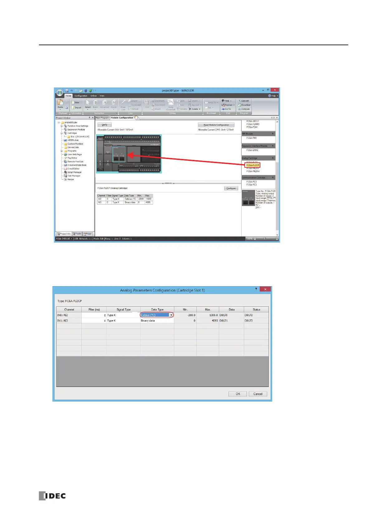 6. Select FC6A-PJ2CP in the expansion modules and cartridges list and drag and drop it to the module configuration area.
