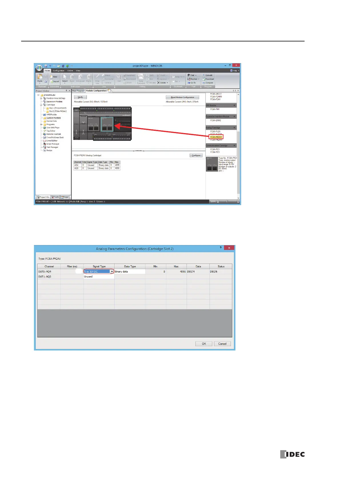 11. Click the FC6A-PK2AV analog I/O cartridge that was interested in the module configuration area and click Configure.