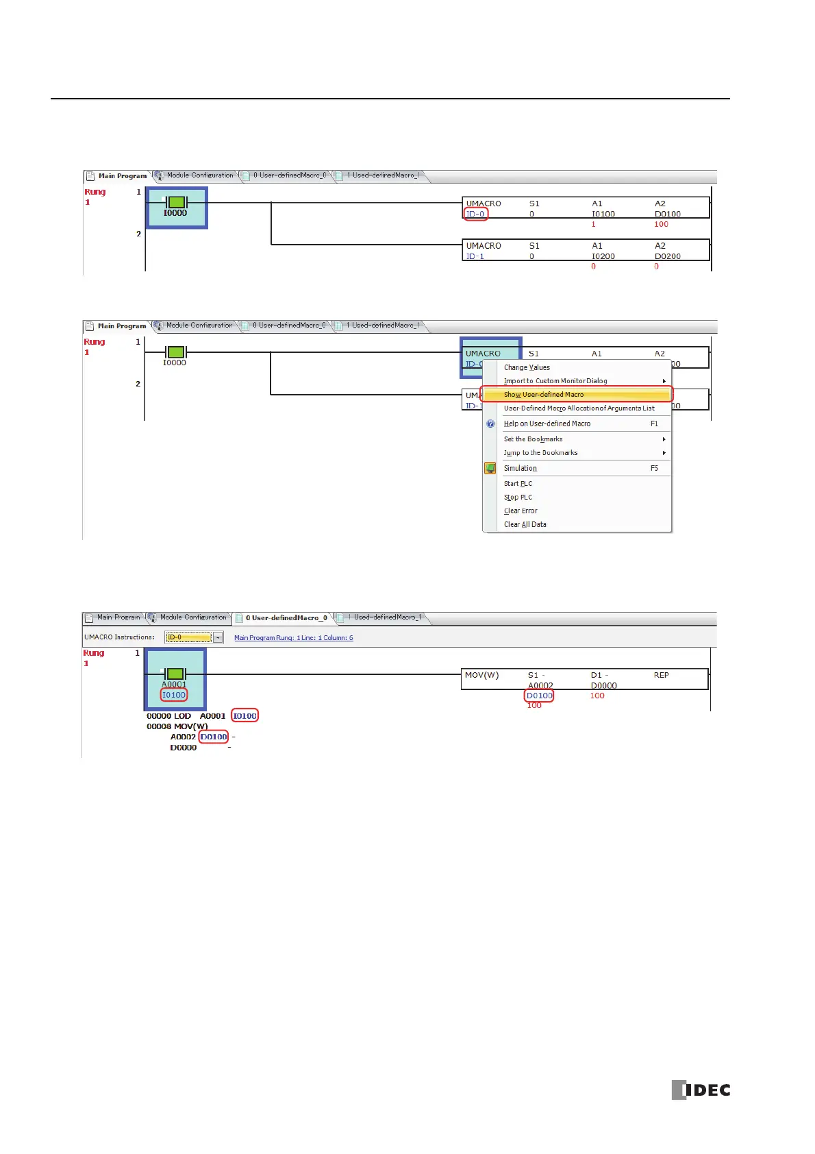 1. When the simulation and monitor are executed, the UMACRO instruction ID is displayed on the UMACRO instruction. UMACRO