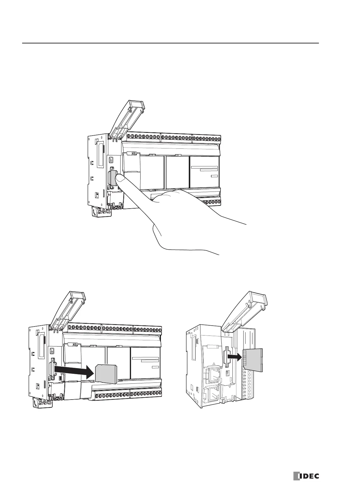 2. Push the SD memory card inserted into the FC6A Series MICROSmart until it clicks to unlock it.