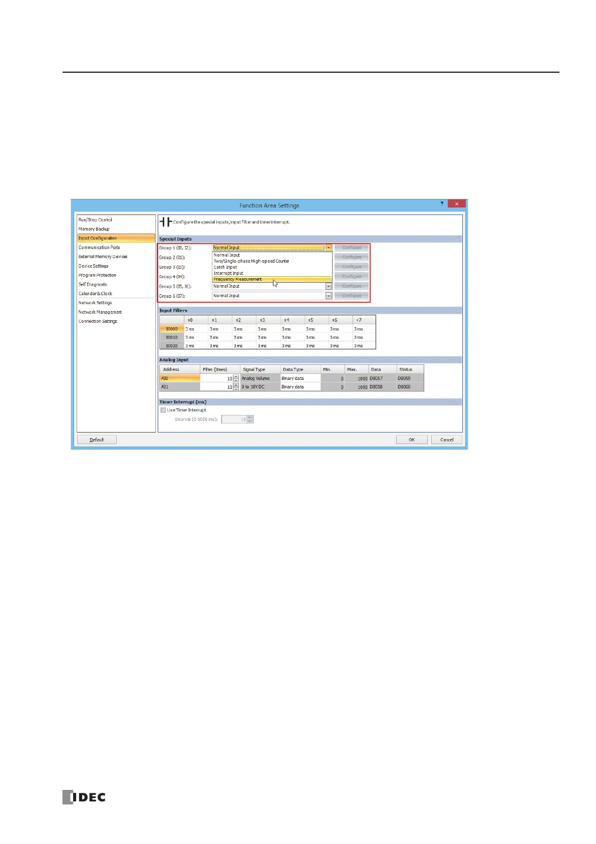 To use frequency measurement, you must configure the Function Area Settings in WindLDR and download the user program to