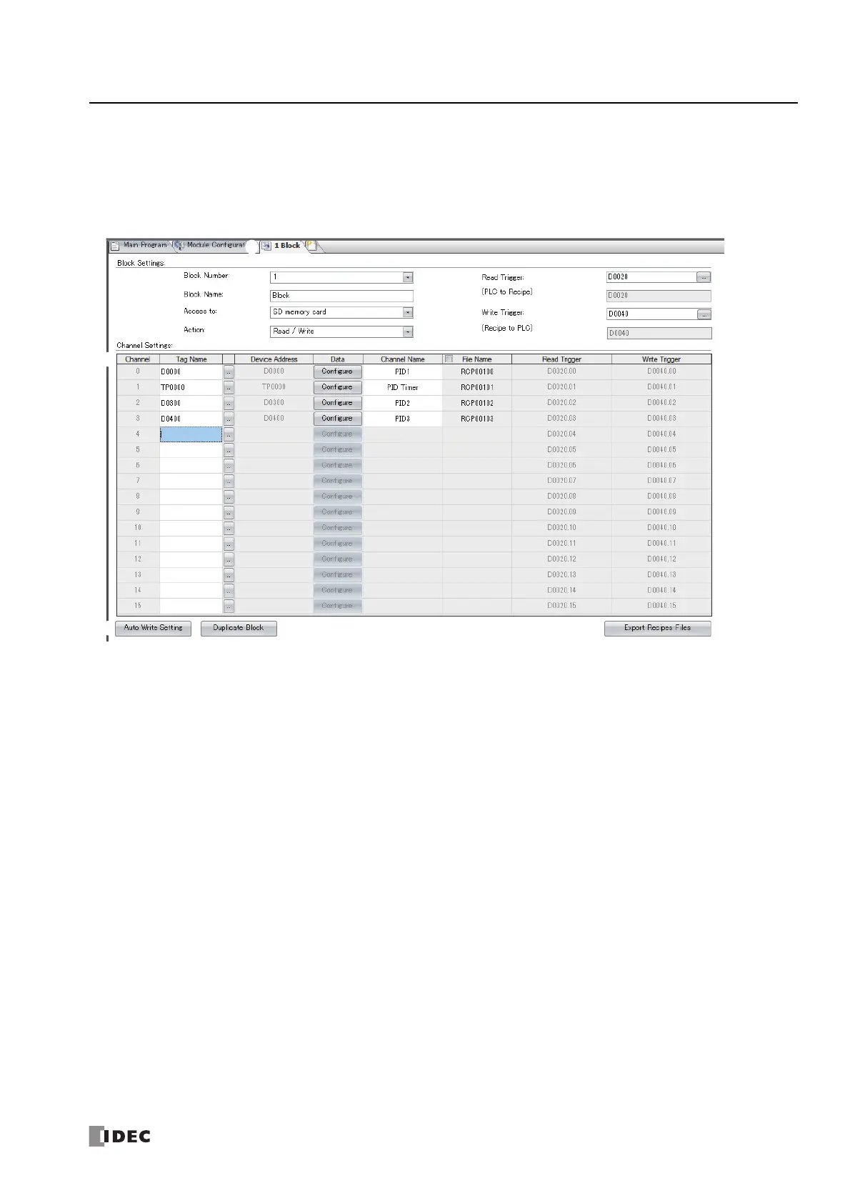 Read : Saves batch read device values to the SD memory card as a recipe file. This option can only be configured when