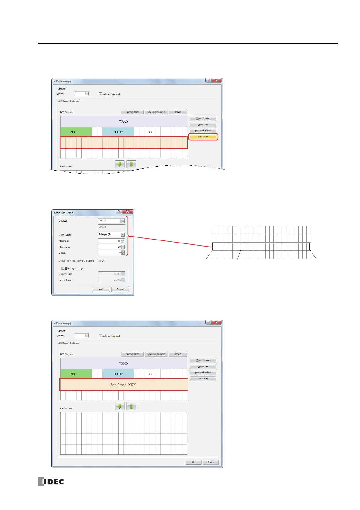 14. Set Device to "D0002", Data Type to "Integer (I)", Max to "50", Min to "-20", and Origin to "0".