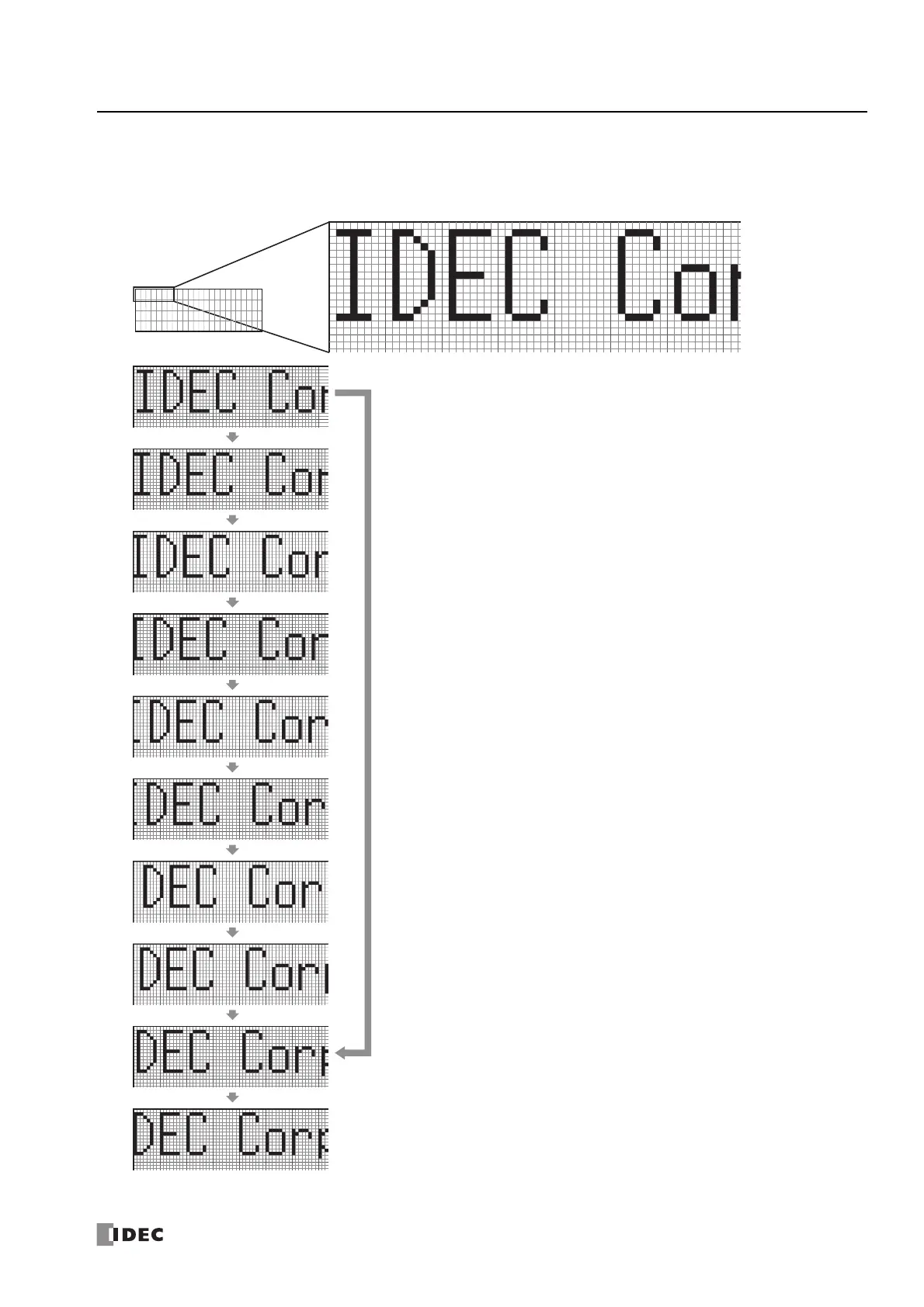 When a text with effect is set to scroll, the text is displayed on the LCD of the HMI module as follows.