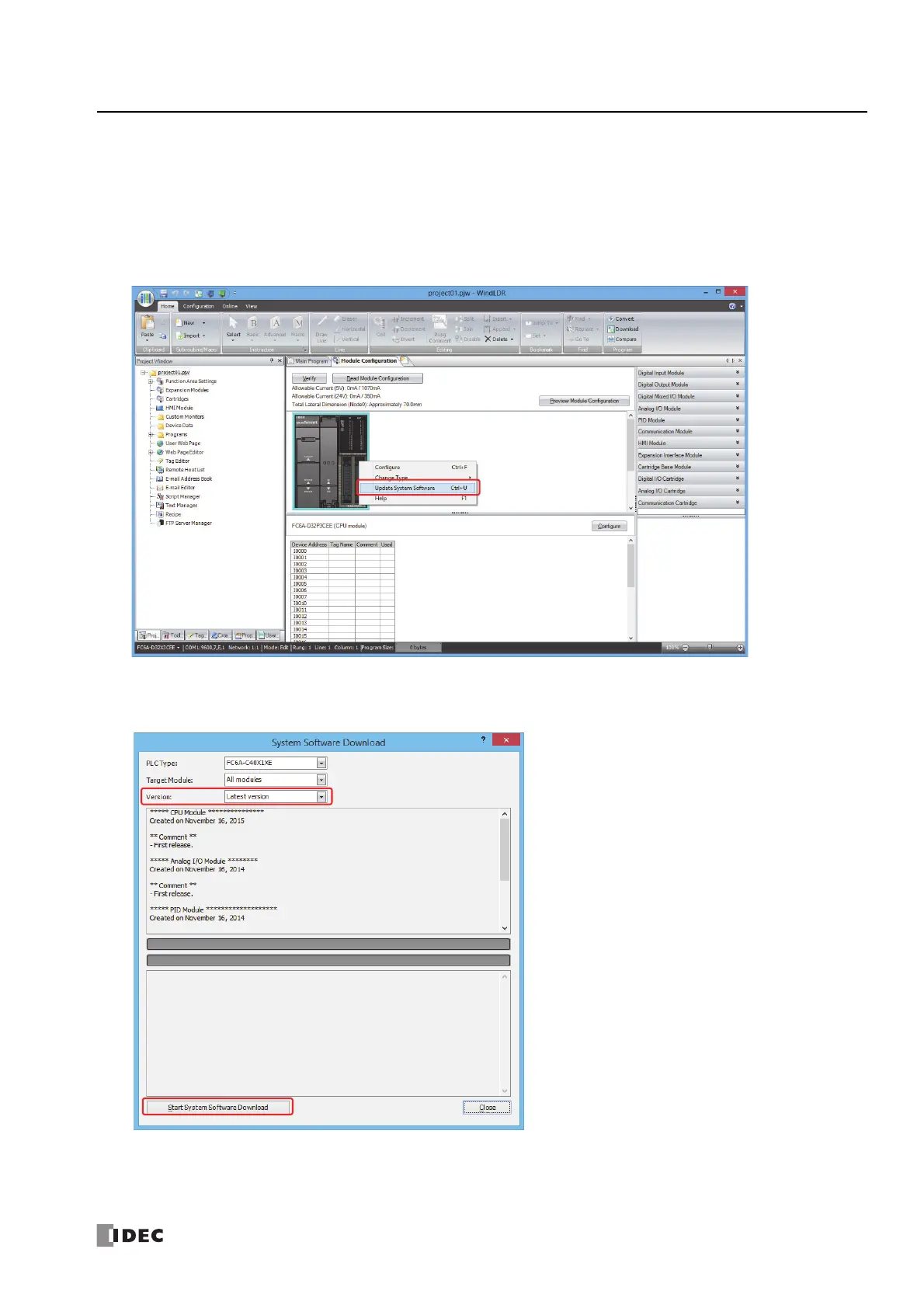 This section describes how to upgrade the system software on the CPU module, analog I/O module, PID module, expansion