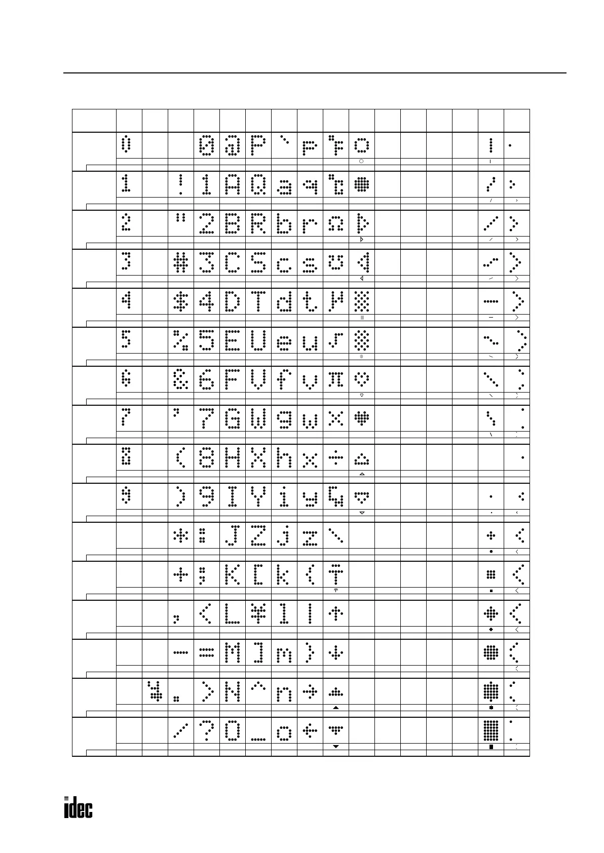 Note: These character codes are used with IDEC DD3S series character display units. Those codes left blank are reserved
